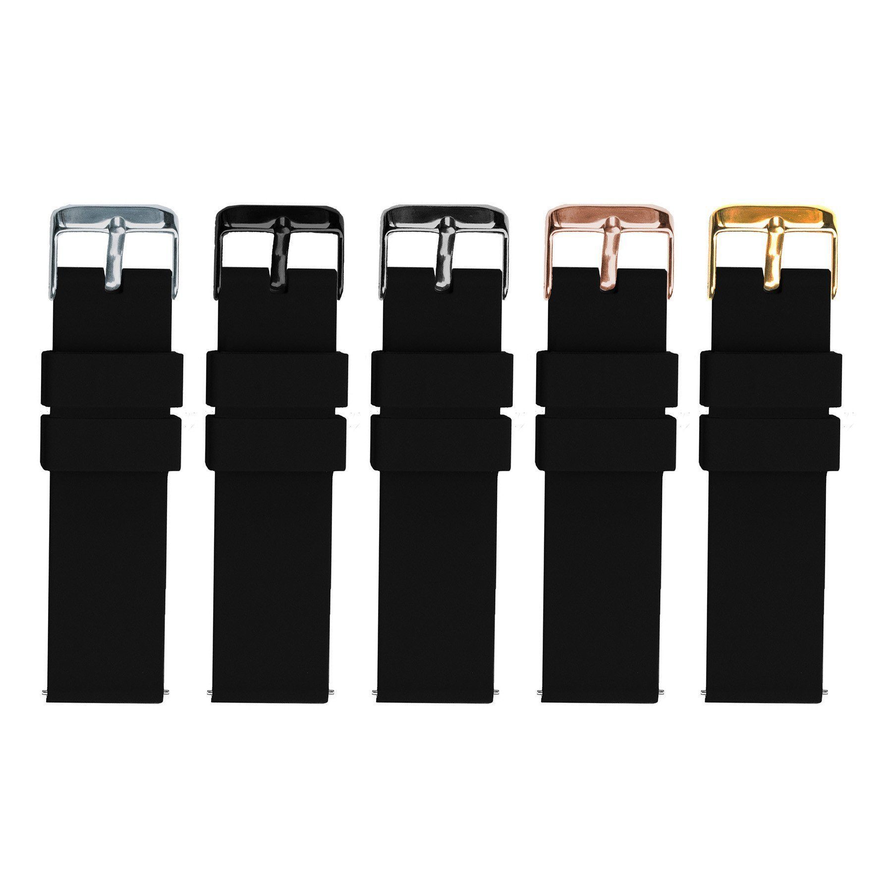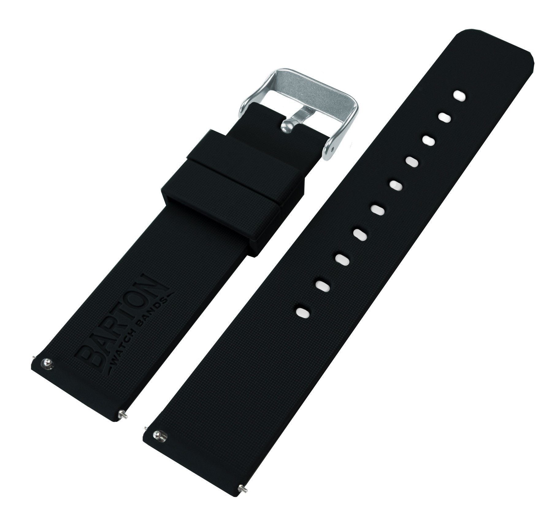 Our black Silicone Quick Release watch straps swap out in just a few seconds. And without tools! Pair this black rubber watch band with our Leather Quick Release to take full advantage of the opportunity to 'Switch it Up' between your workplace and the gym.