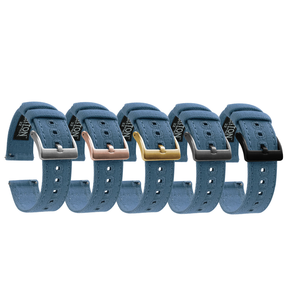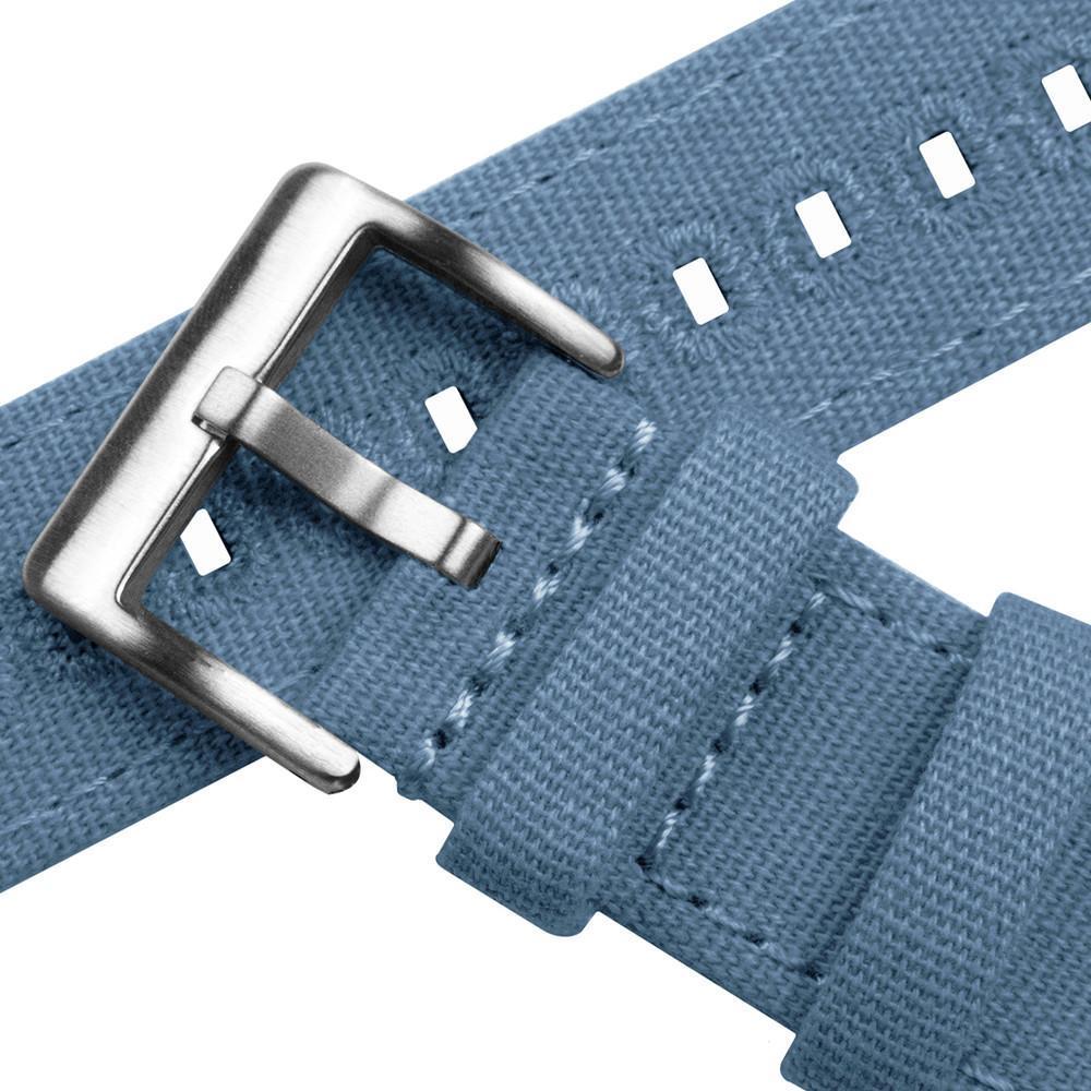 Our Canvas Quick Release watch straps are meticulously crafted from highly durable canvas and embroidered for style and strength. This Nantucket blue watch strap adds character to any timepiece and can be swapped in and out without any tools! Pair this light blue watch band with our Silicone or Leather Quick Release to take full advantage of the opportunity to 'Switch it Up'.