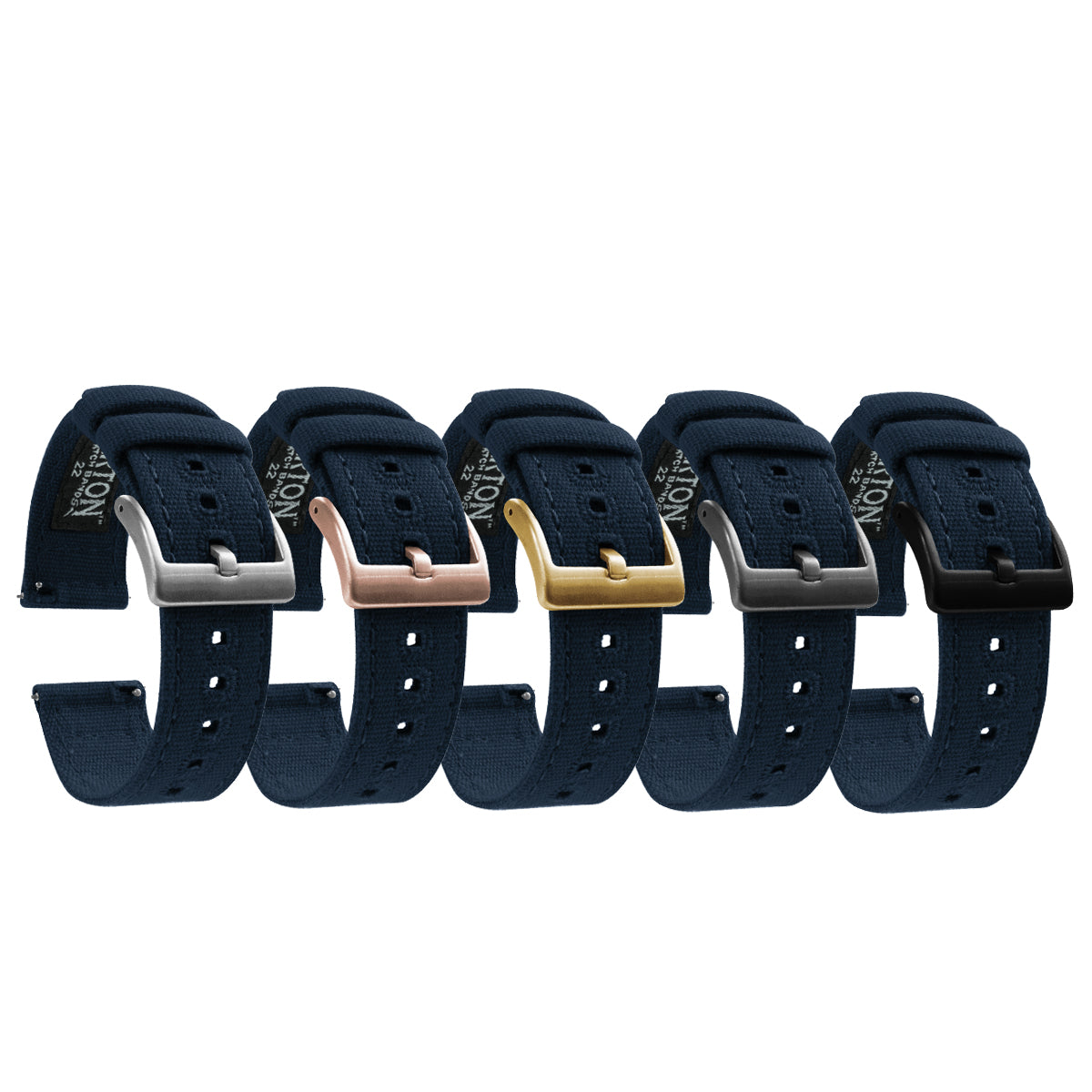 Our Canvas Quick Release watch bands are meticulously crafted from highly durable canvas and embroidered for style and strength. These navy blue canvas watch straps add character to any timepiece and can be swapped in and out without any tools! Pair this navy blue canvas watch band with our Silicone or Leather Quick Release to take full advantage of the opportunity to 'Switch it Up'.