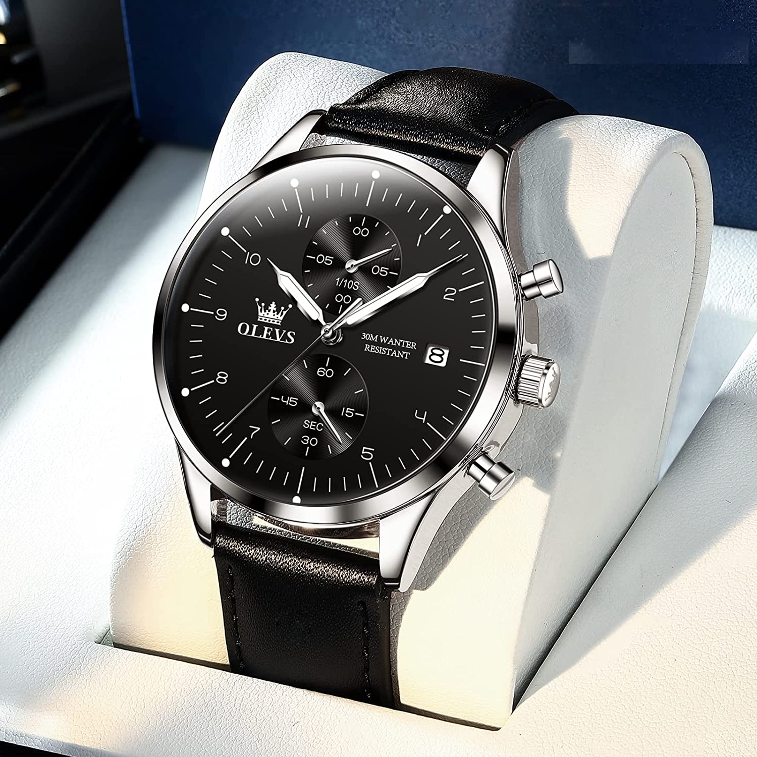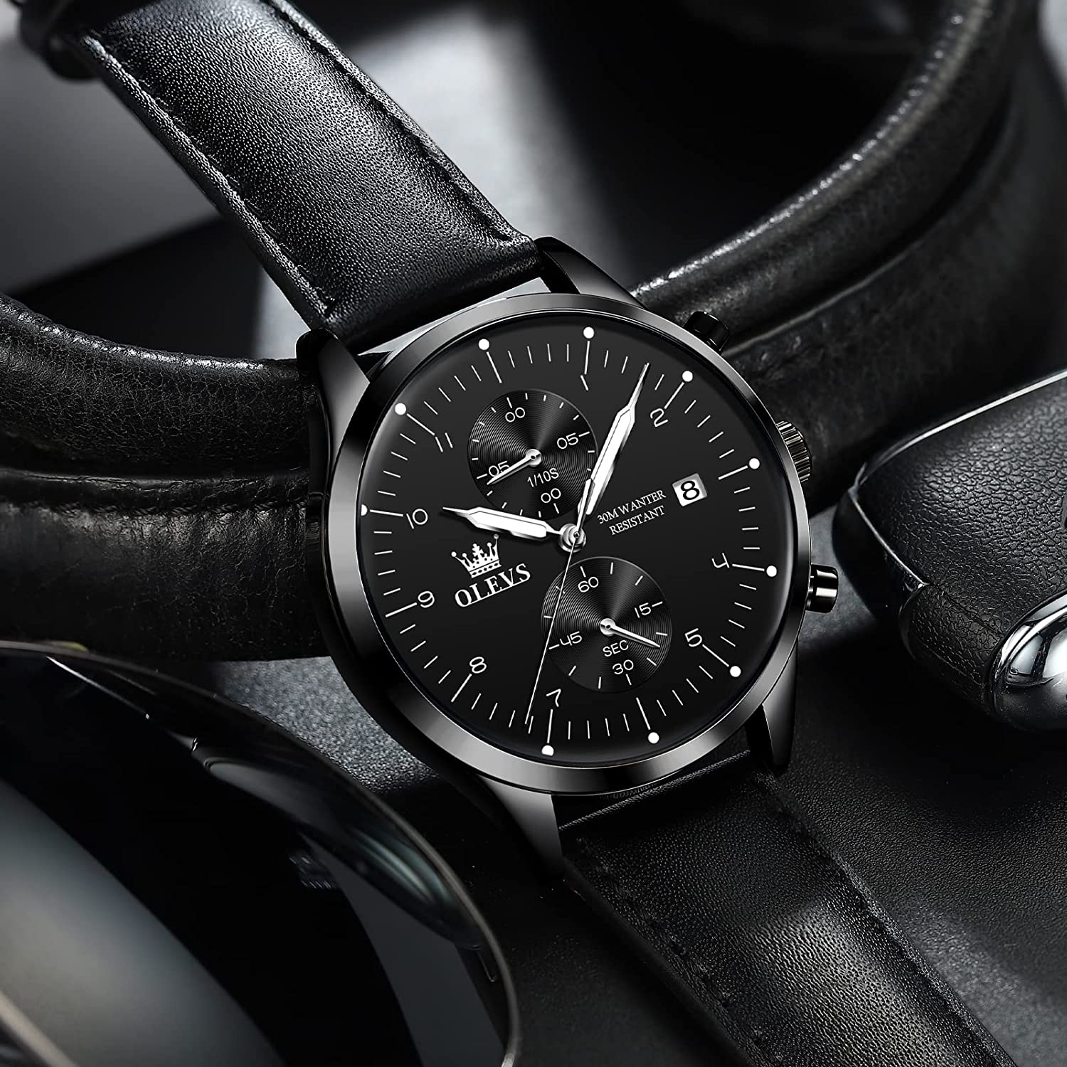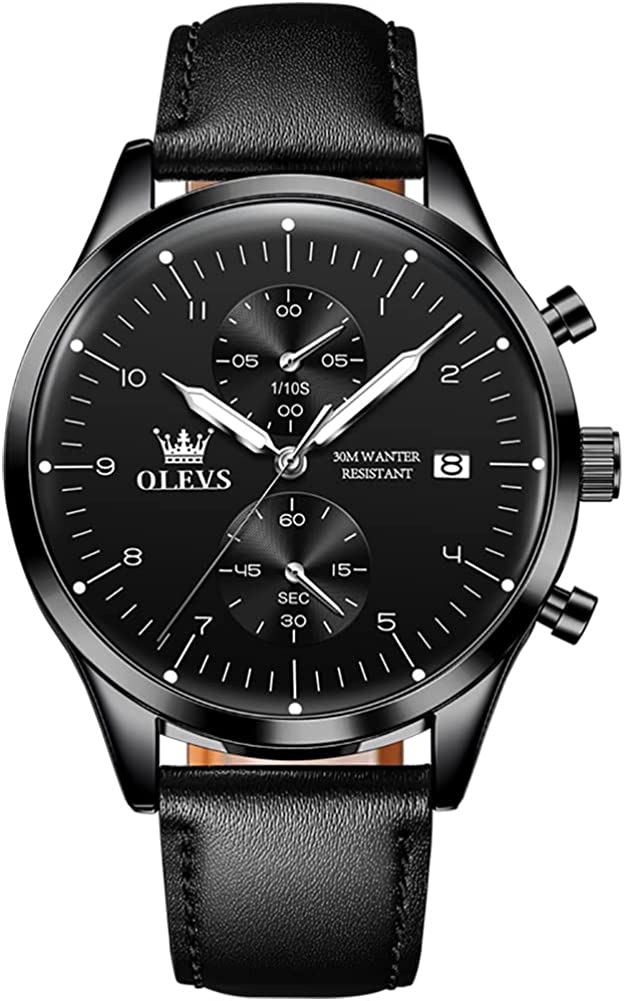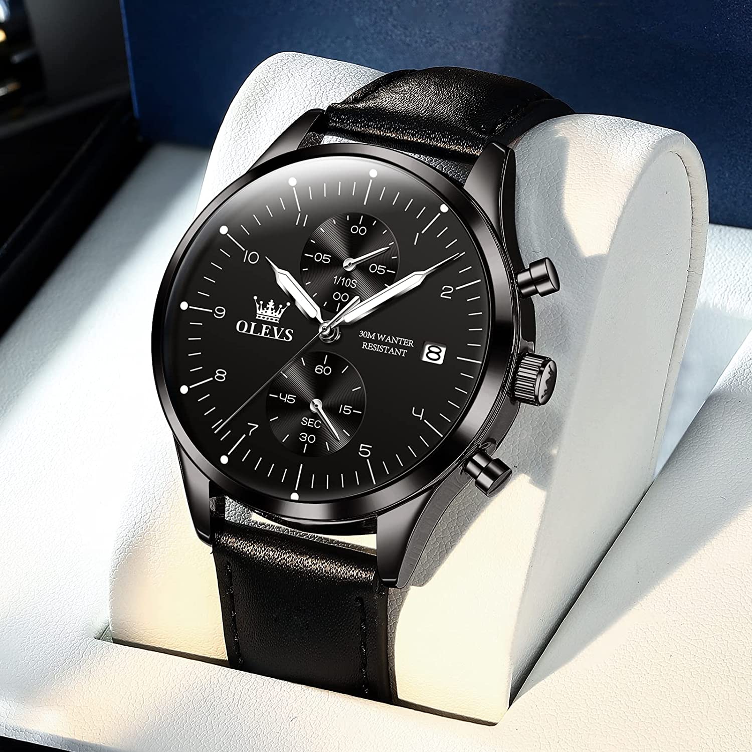 - High-strength mineral glass mirror brings better wearing protection. Luminous pointer is convenient for you to read in the dark. Soft skin-friendly black leather strap Bring you a comfortable wearing experience. Classic and generous design suitable for any occasion.