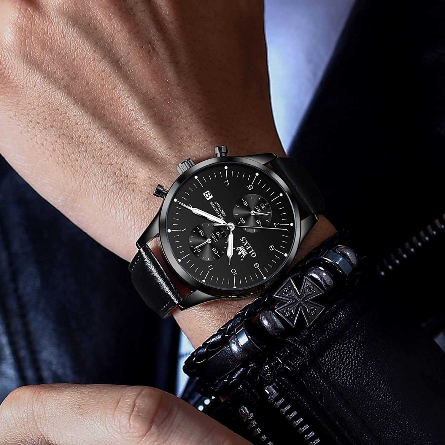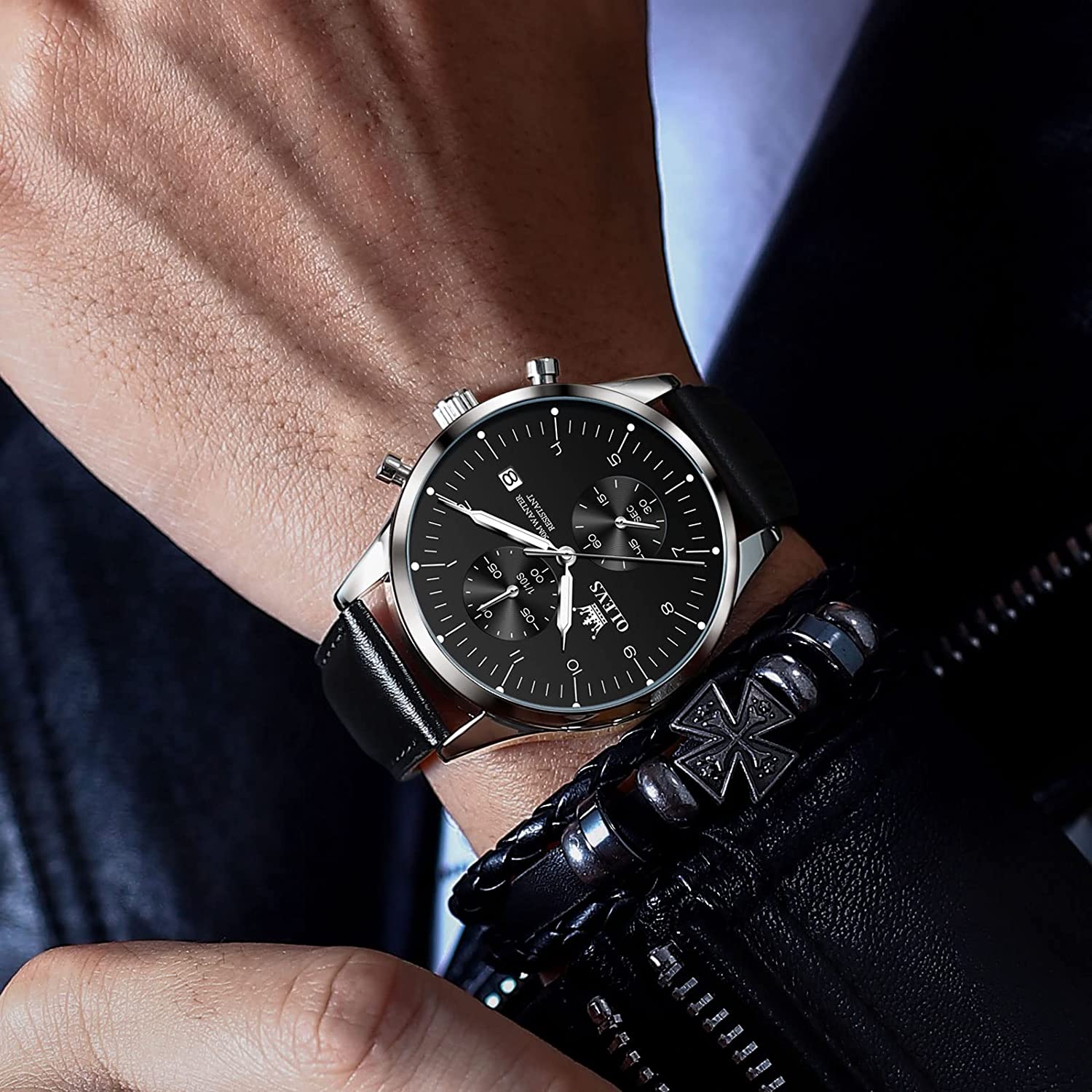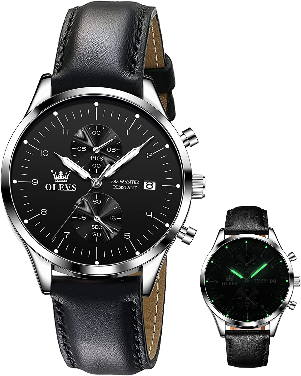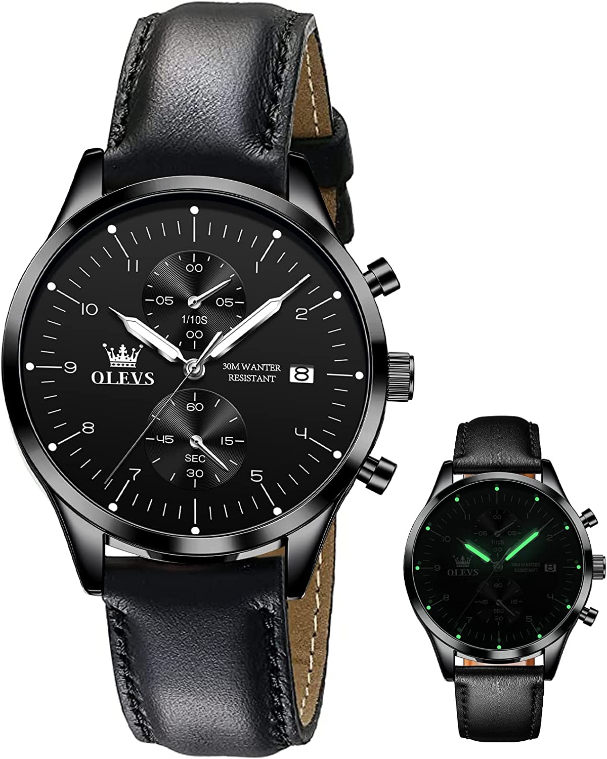 - High-strength mineral glass mirror brings better wearing protection. Luminous pointer is convenient for you to read in the dark. Soft skin-friendly black leather strap Bring you a comfortable wearing experience. Classic and generous design suitable for any occasion.
