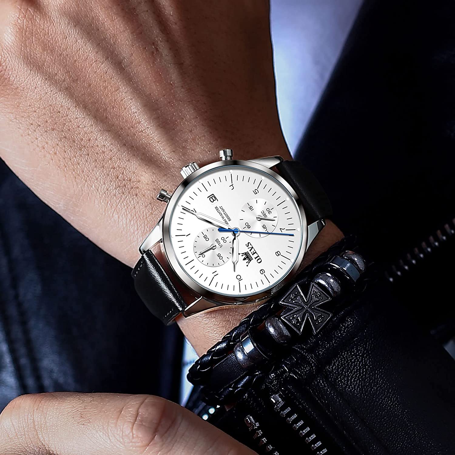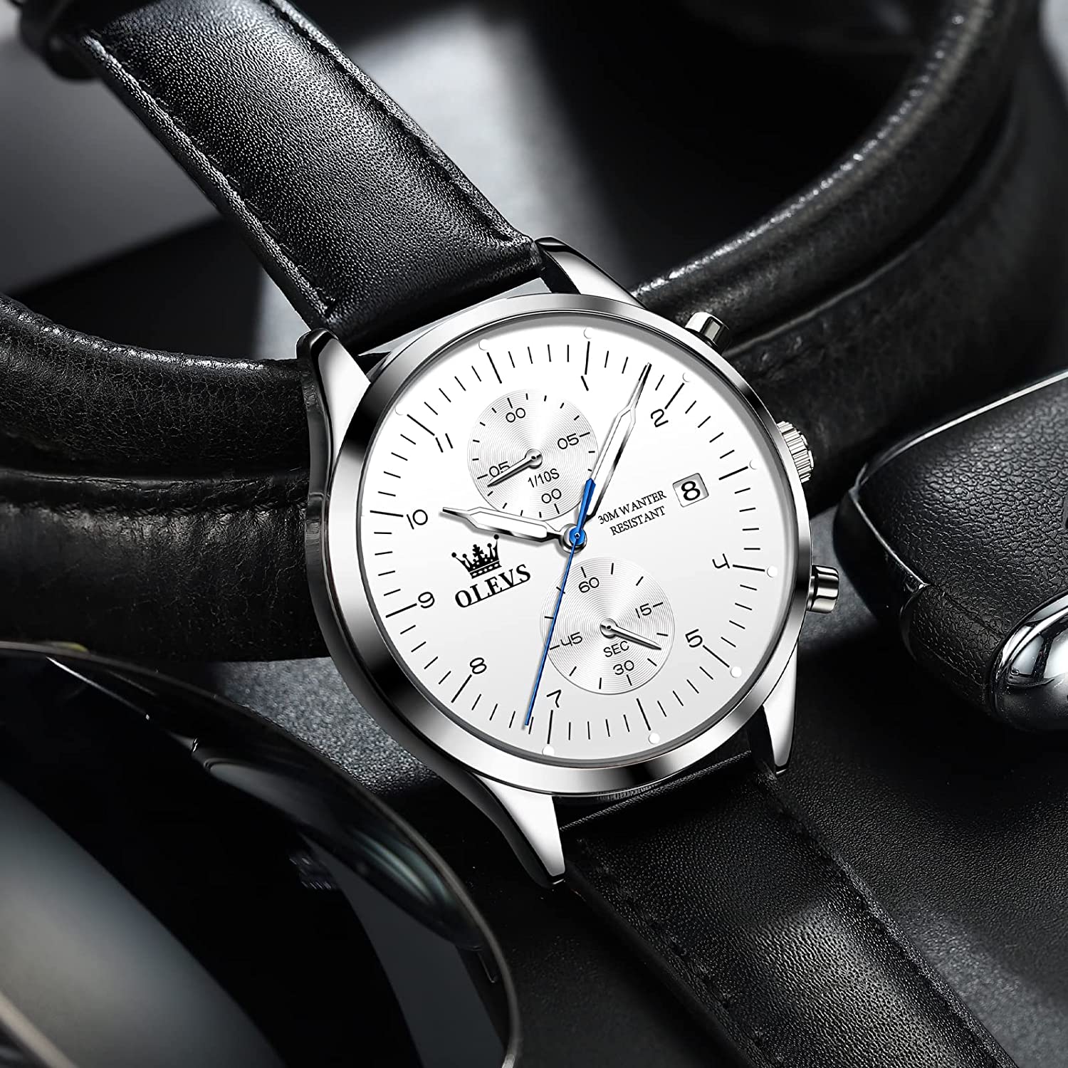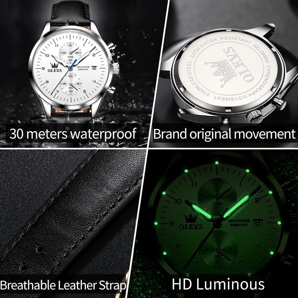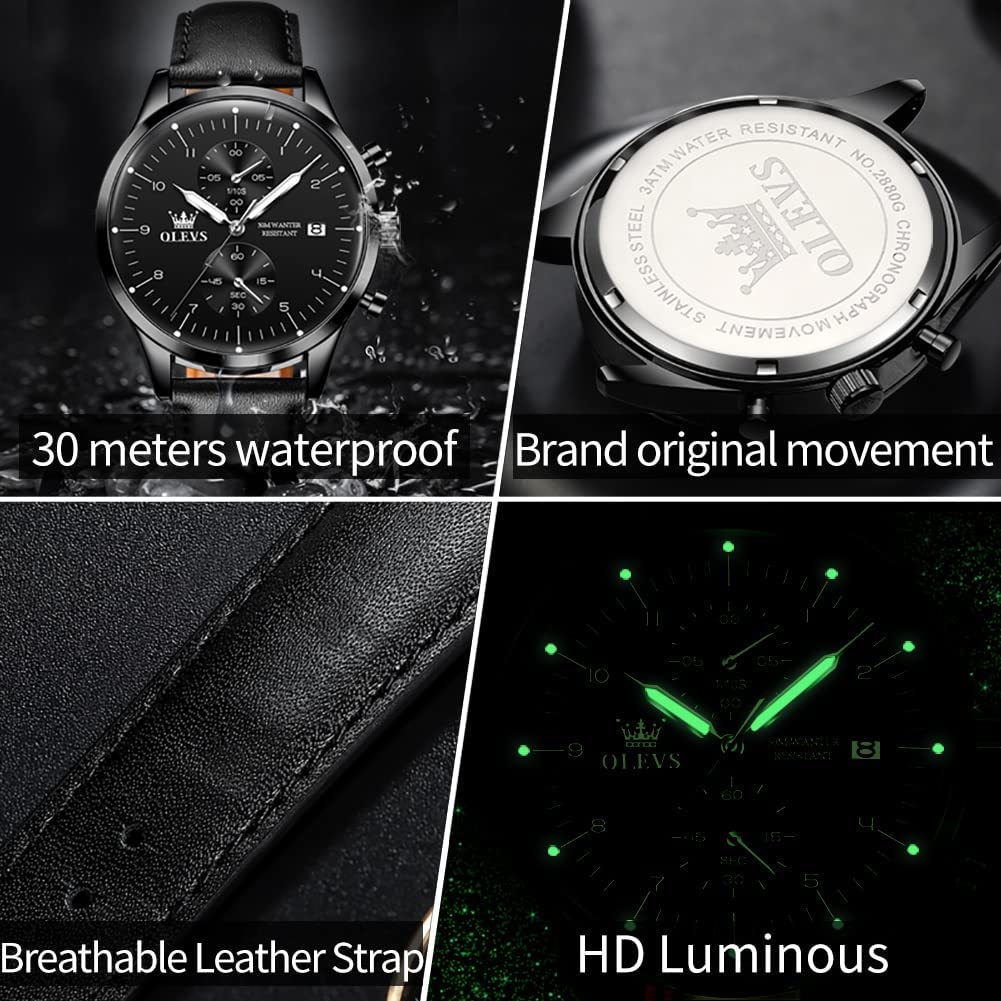 - High-strength mineral glass mirror brings better wearing protection. Luminous pointer is convenient for you to read in the dark. Soft skin-friendly black leather strap Bring you a comfortable wearing experience. Classic and generous design suitable for any occasion.