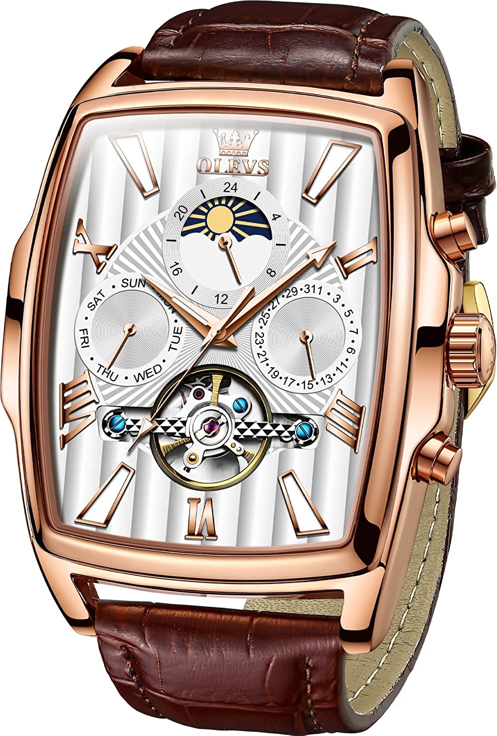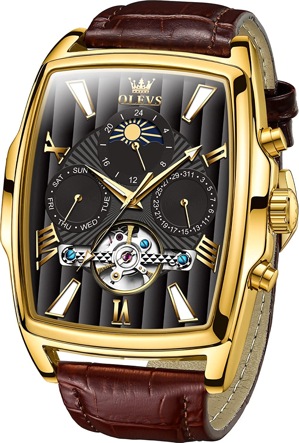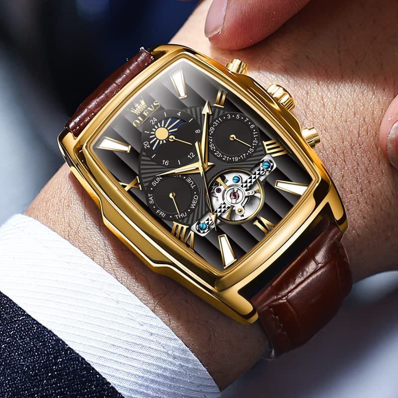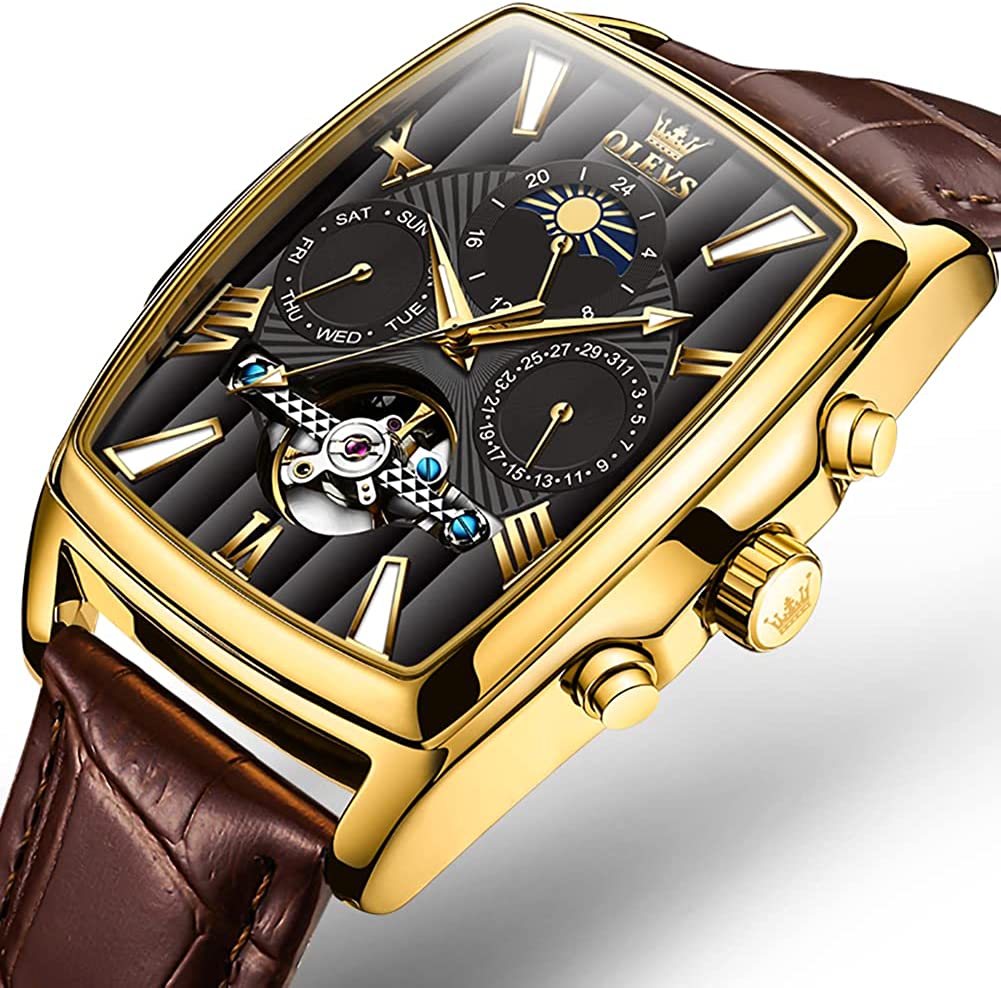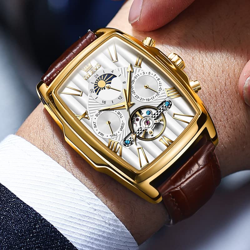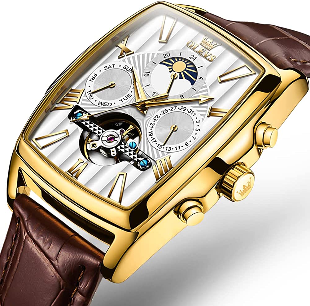 - Square Design Wrist Watches: The tourbillon is matched with the moon phase window and day date display,honorable crown logo,well-designed in dial layout. Exquisite decorative watch, unique square watch.