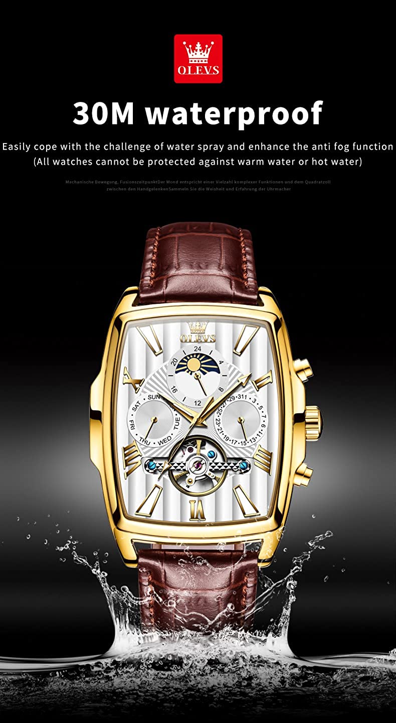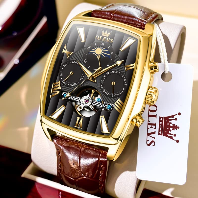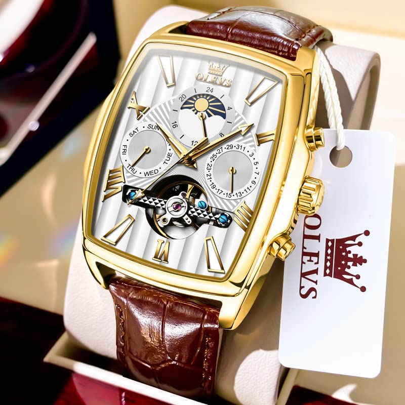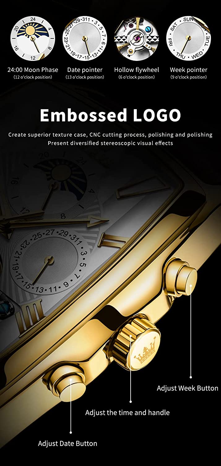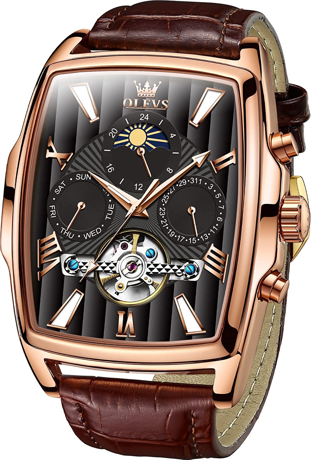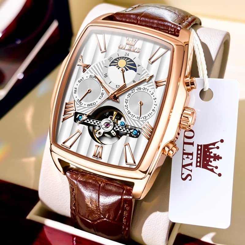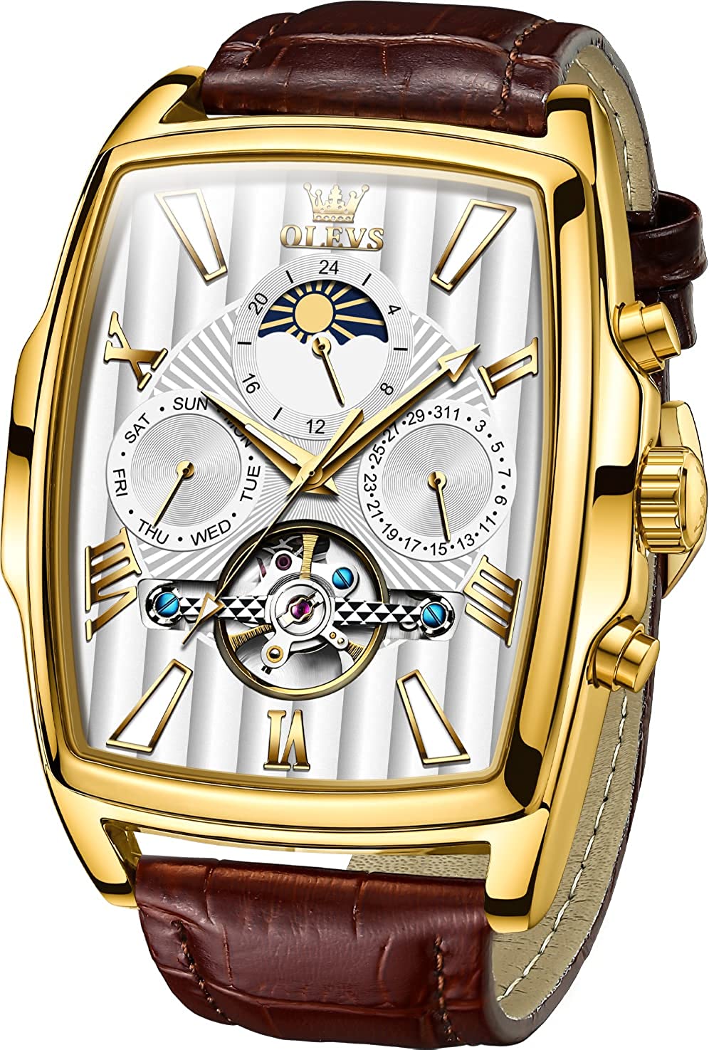 - Square Design Wrist Watches: The tourbillon is matched with the moon phase window and day date display,honorable crown logo,well-designed in dial layout. Exquisite decorative watch, unique square watch.