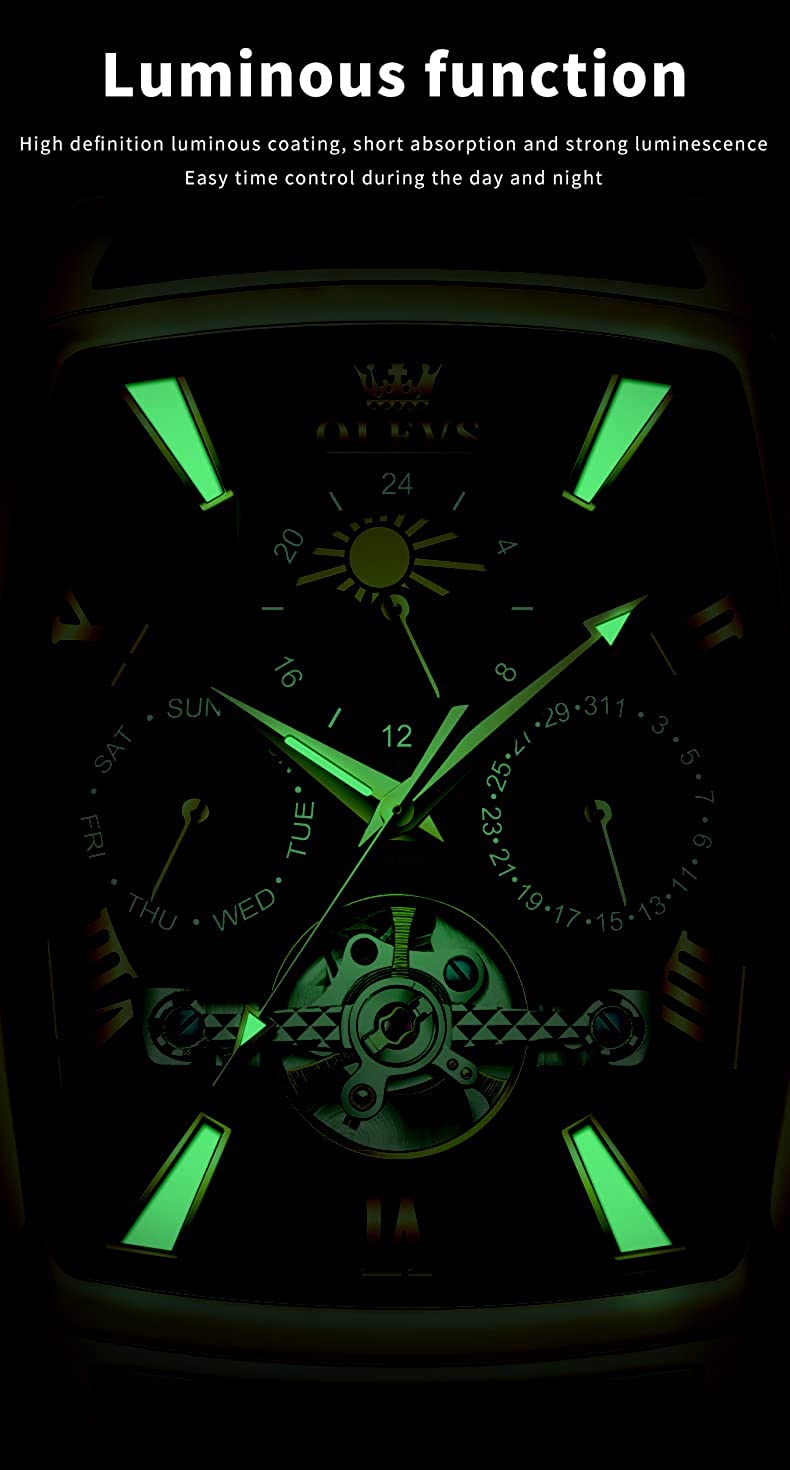 - Mens Mechanical Watch: Original automatic movement,support self-winding and manual winding,no battery required. Hollow movement design, feel the charm of mechanical watches.