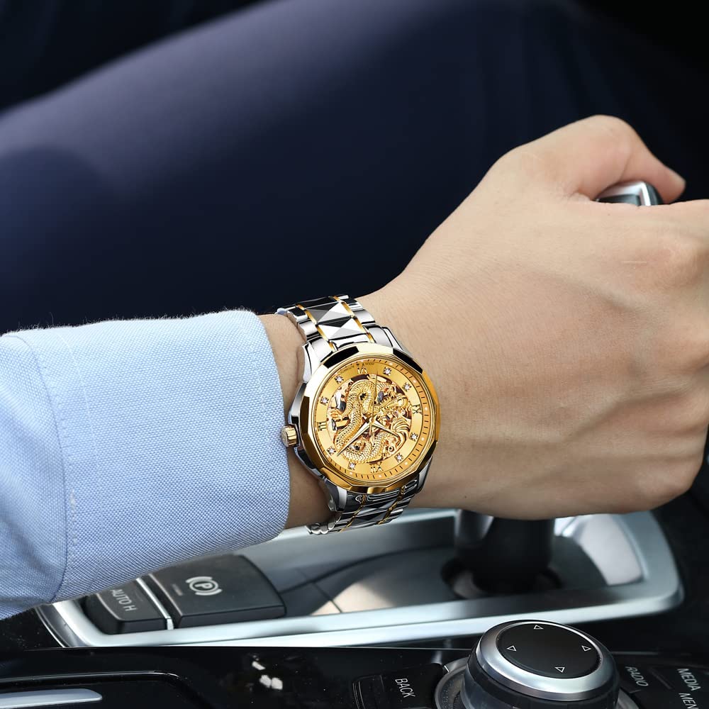 • OLEVS Gold Watches for Men Luxury Automatic Dragon Skeleton Watches Mechanical Business Dress with Tungsten Steel Luminous 5atm Waterproof Diamond Fashion Wrist Watch All items in order#1152