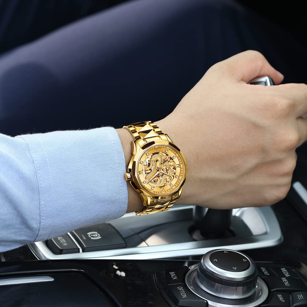 OLEVS Gold Watches for Men Luxury Automatic Dragon Skeleton Watches Mechanical Business Dress with Tungsten Steel Luminous 5atm Waterproof Diamond Fashion Wrist Watch All items in order#1152