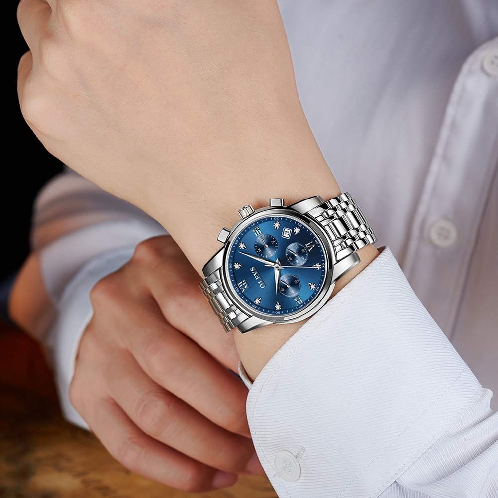 - 👍Stainless steel watches:Highly polished stainless steel case and bracelet combined with a hidden safety butterfly button,easy to wear without hurting your hands,wear-resistant and scratch-resistant,complimentary adjuster and with operating instructions, easy to operate.