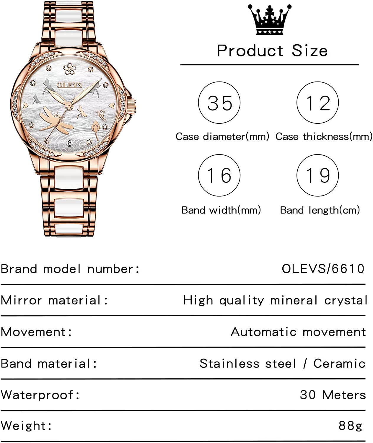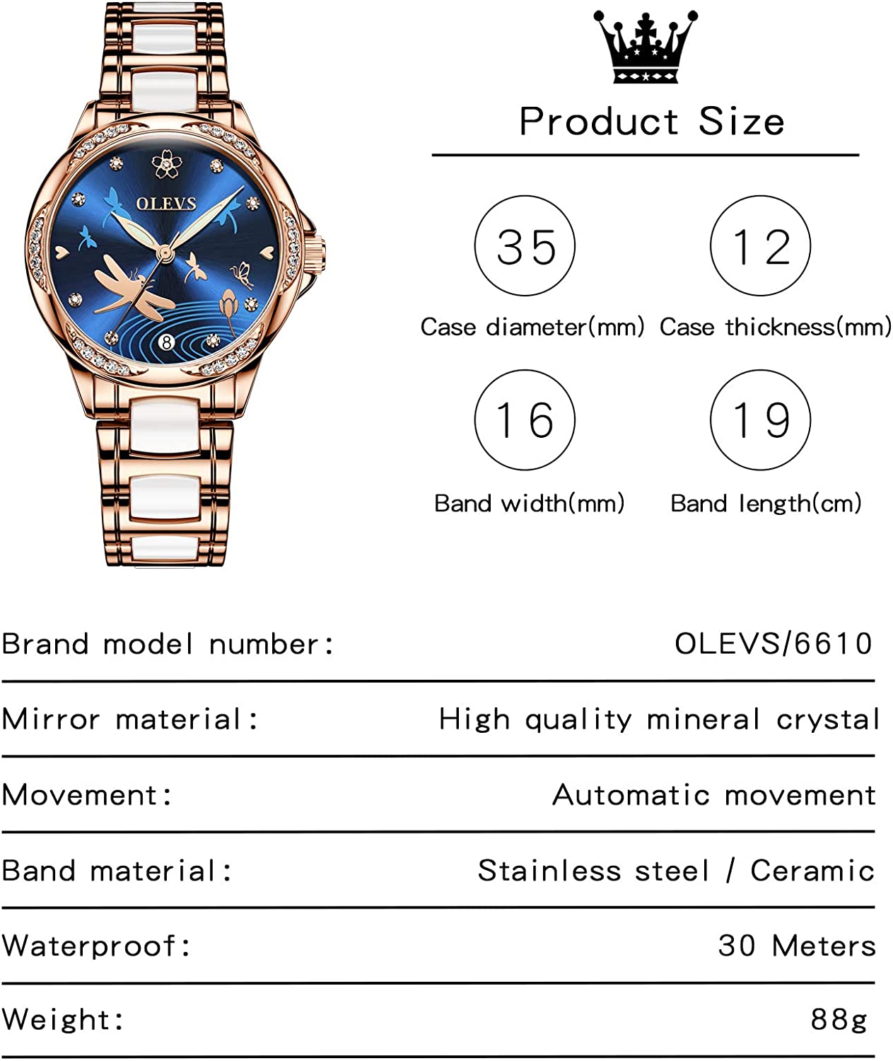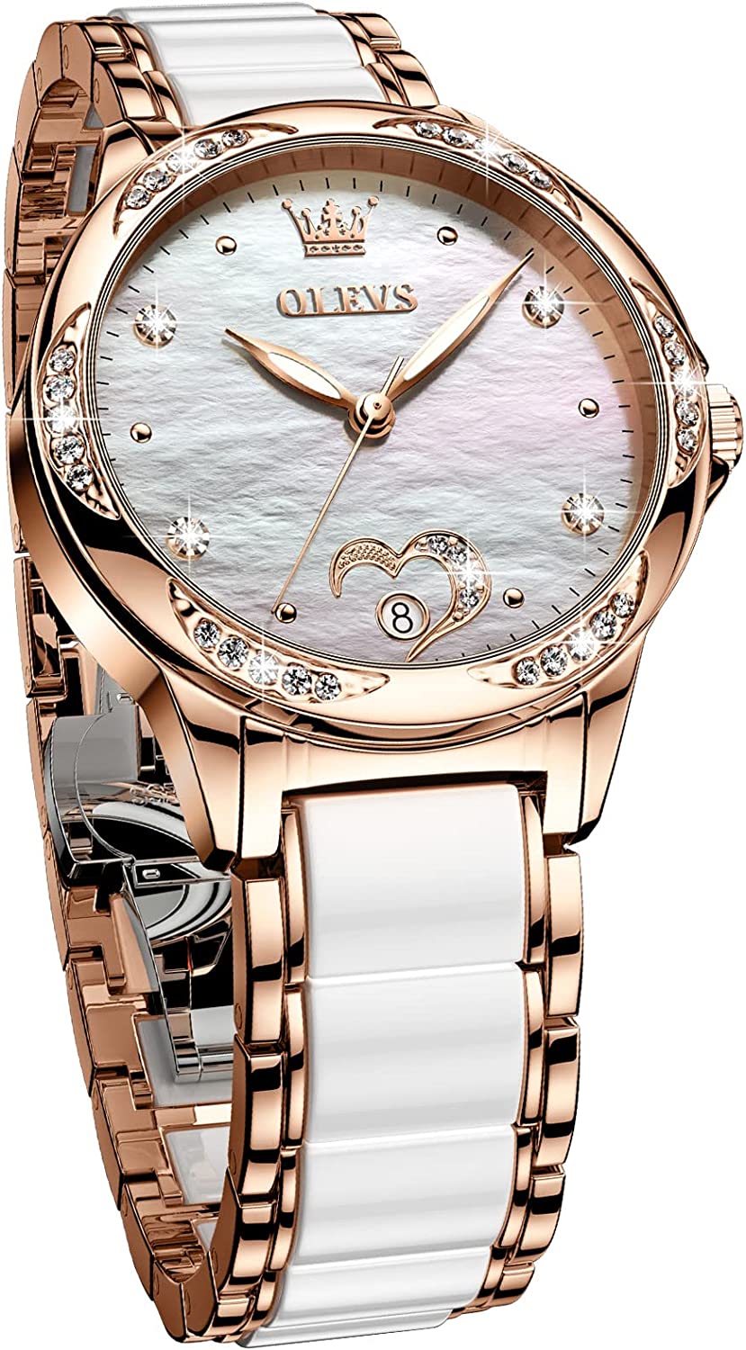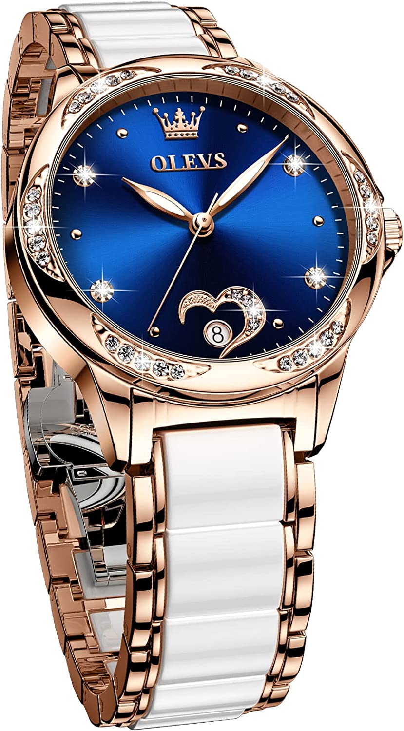 - 💎Ceramic Band&Water Resistant:Two-tone stainless steel ceramic band with folding clasp, easy to wear while still offering excellent comfort. (The band is too short, you can contact the seller, a watch link will be sent). Water resistant to 100 feet (30M),Suitable for everyday use. Splash/rain resistant. Not suitable for showering, bathing, swimming, snorkeling and water related work.