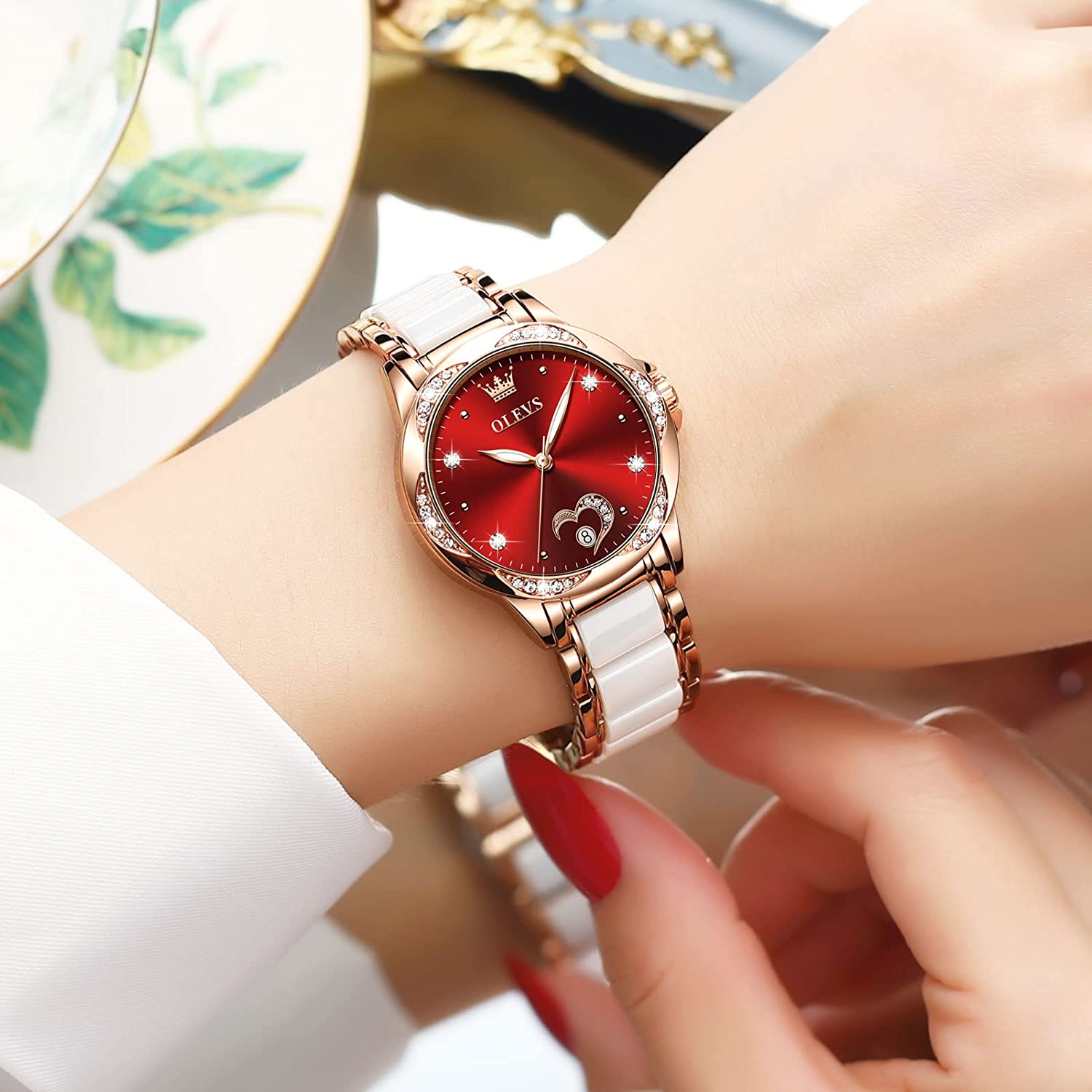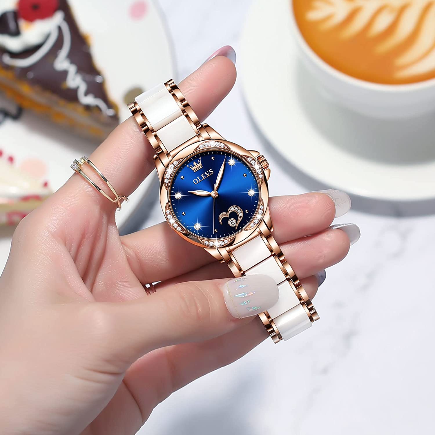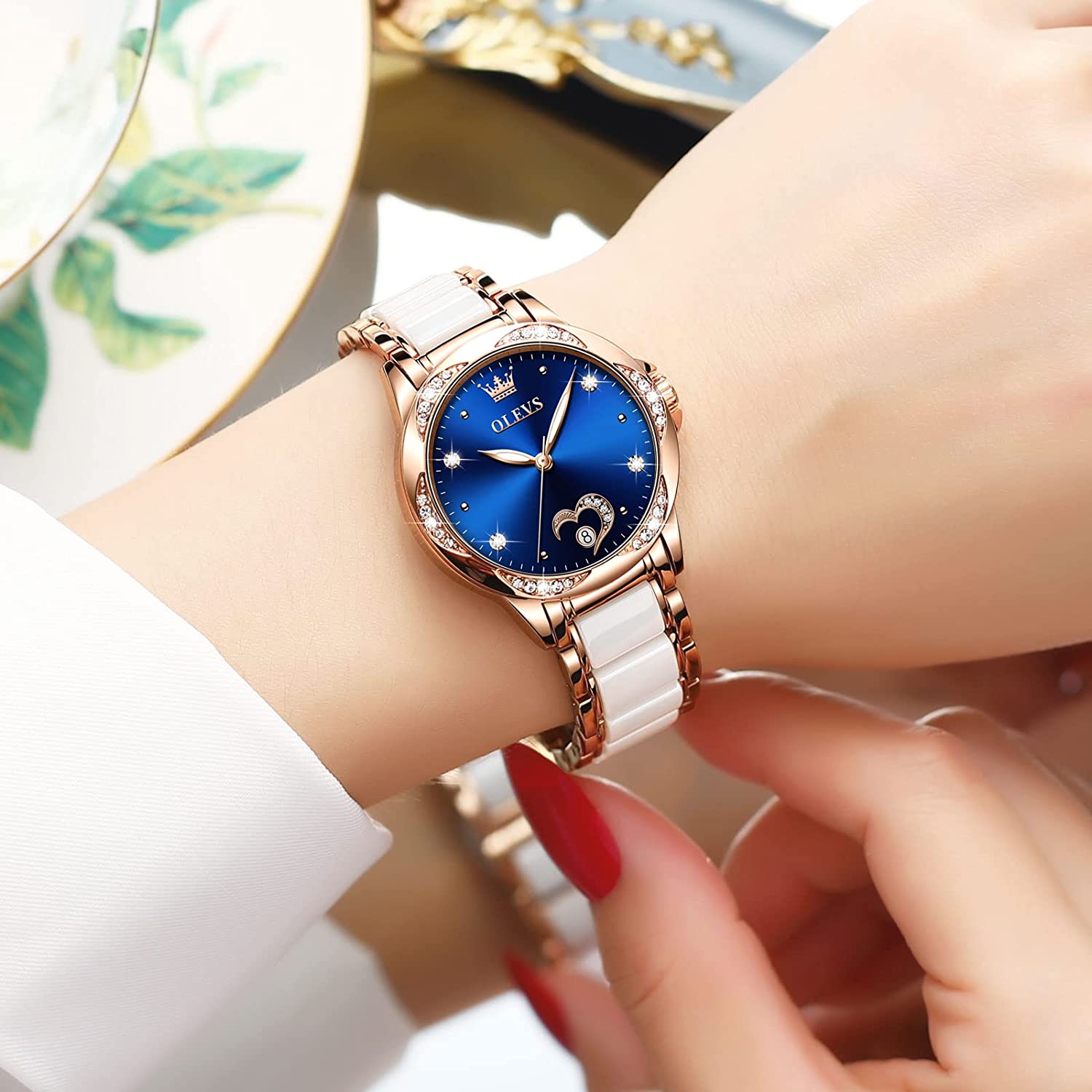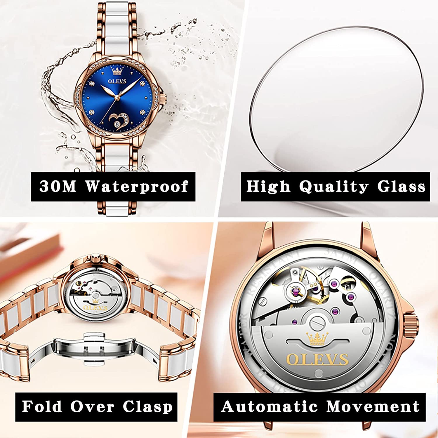 - 💎Ceramic Band&Water Resistant:Two-tone stainless steel ceramic band with folding clasp, easy to wear while still offering excellent comfort. (The band is too short, you can contact the seller, a watch link will be sent). Water resistant to 100 feet (30M),Suitable for everyday use. Splash/rain resistant. Not suitable for showering, bathing, swimming, snorkeling and water related work.
