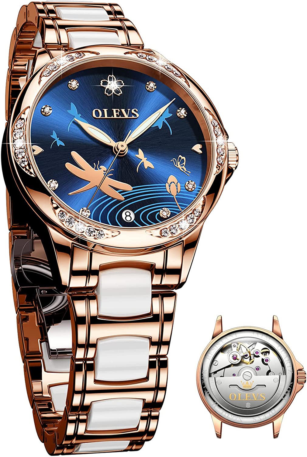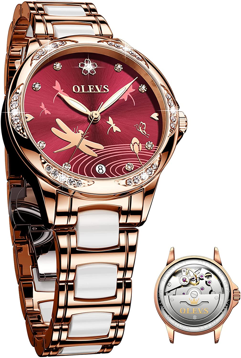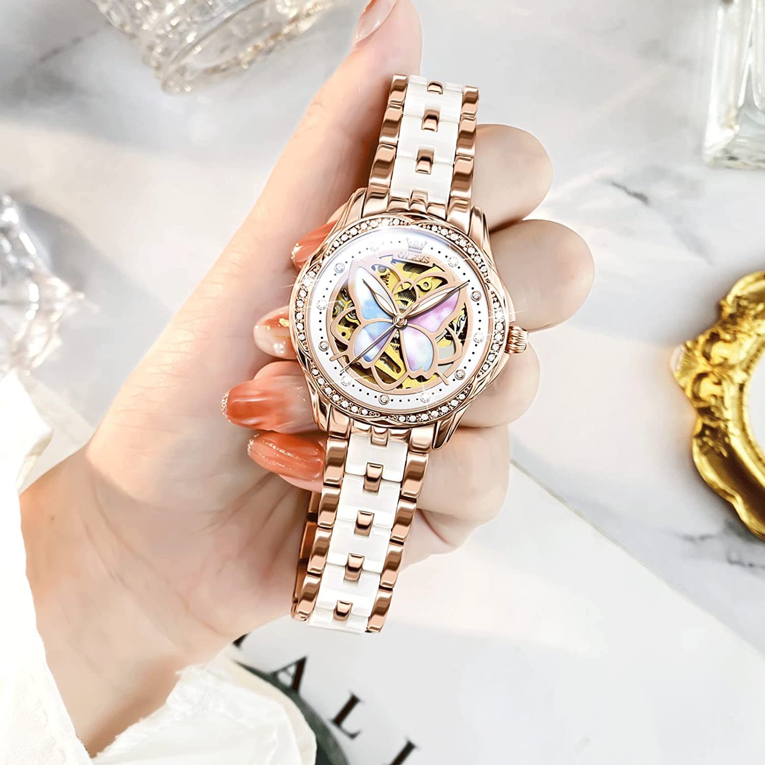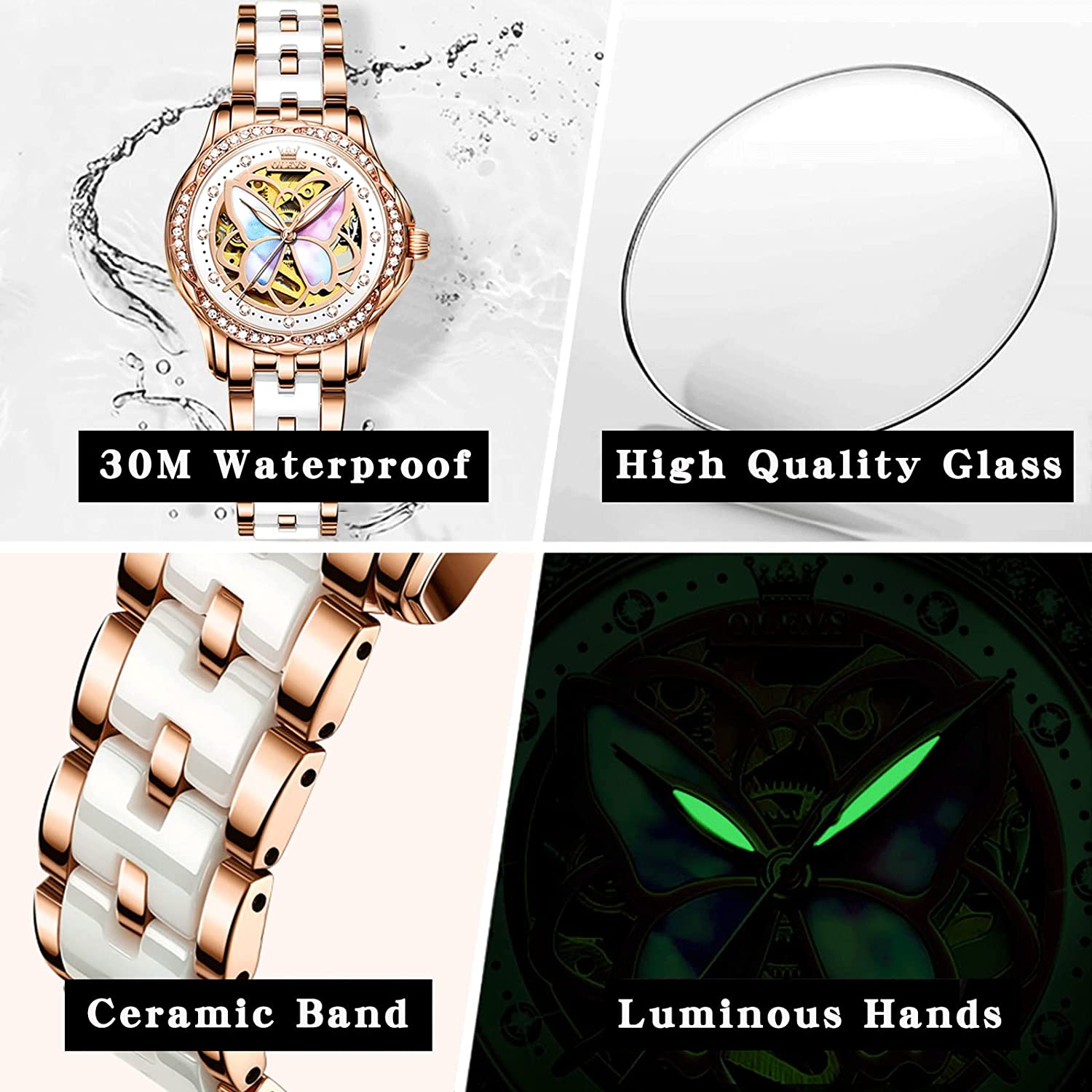- ❤️Elegant Design:Shiny diamond and elegant butterfly skeleton design,the exquisite dial and imported automatic movement make the watch show elegance and luxury everywhere.This wrist watch in the charming grace will definitely bring you more than the bright beauty.