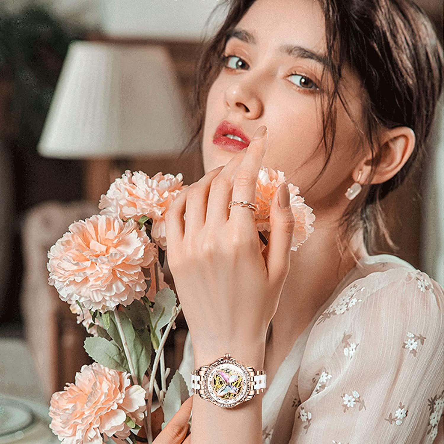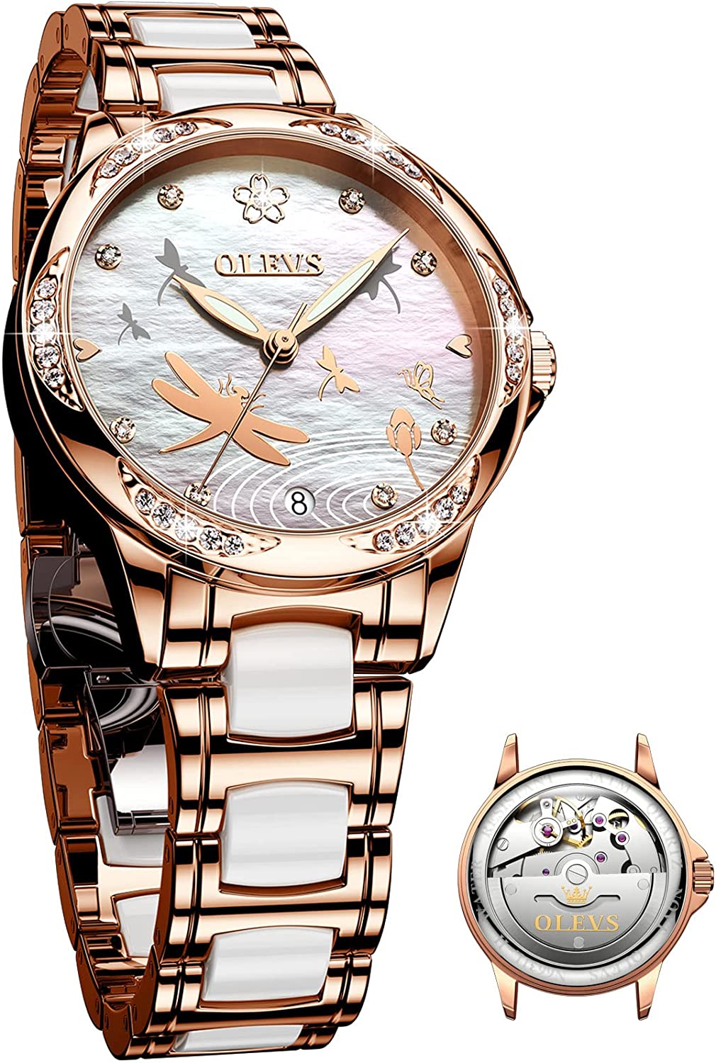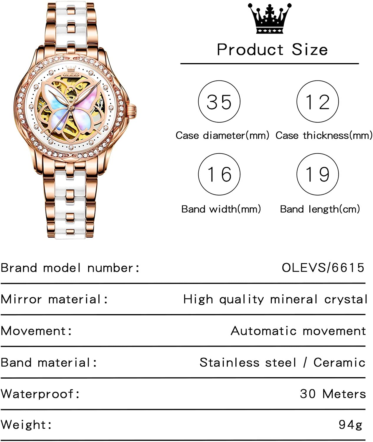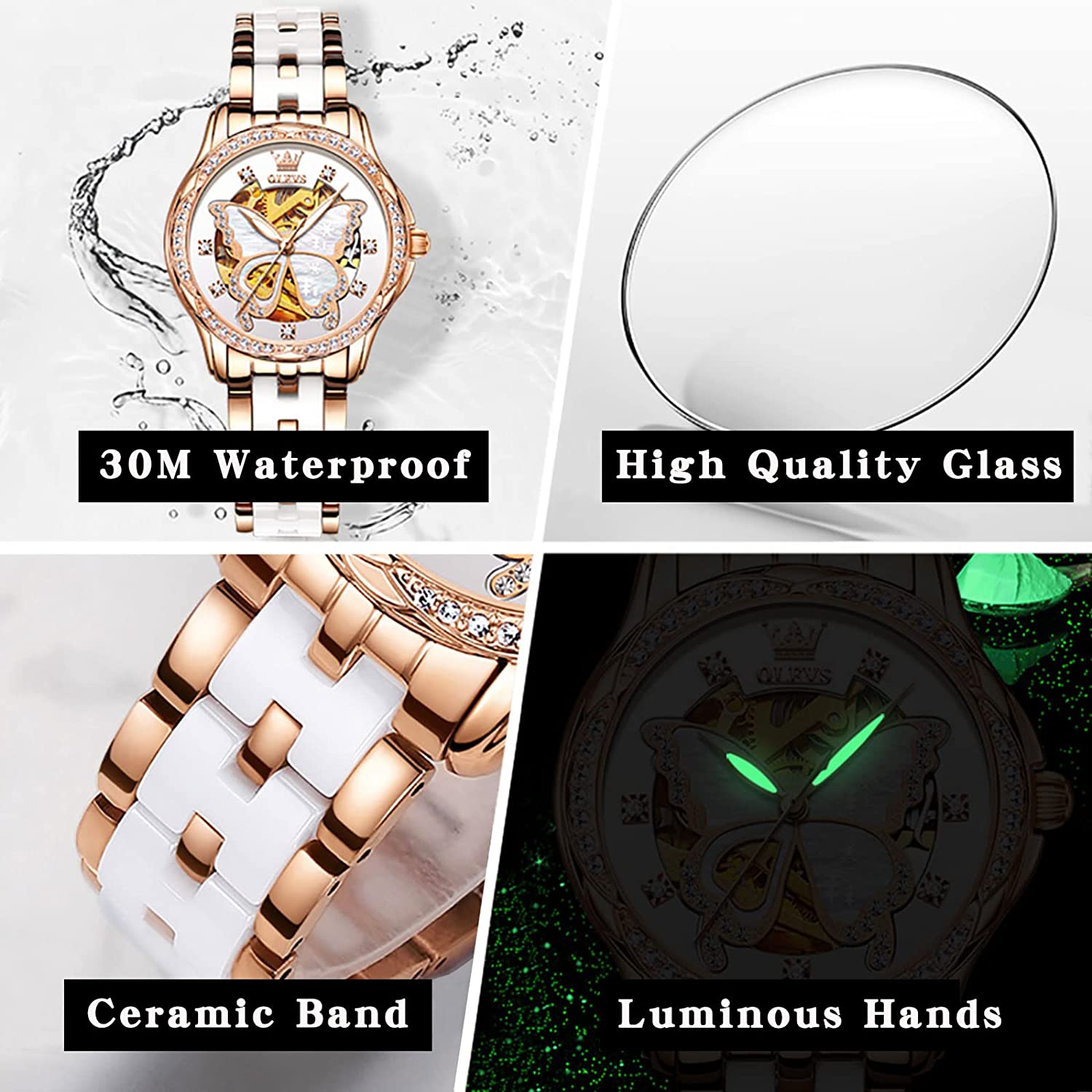 - ❤️Elegant Design:Shiny diamond and elegant butterfly skeleton design,the exquisite dial and imported automatic movement make the watch show elegance and luxury everywhere.This wrist watch in the charming grace will definitely bring you more than the bright beauty.