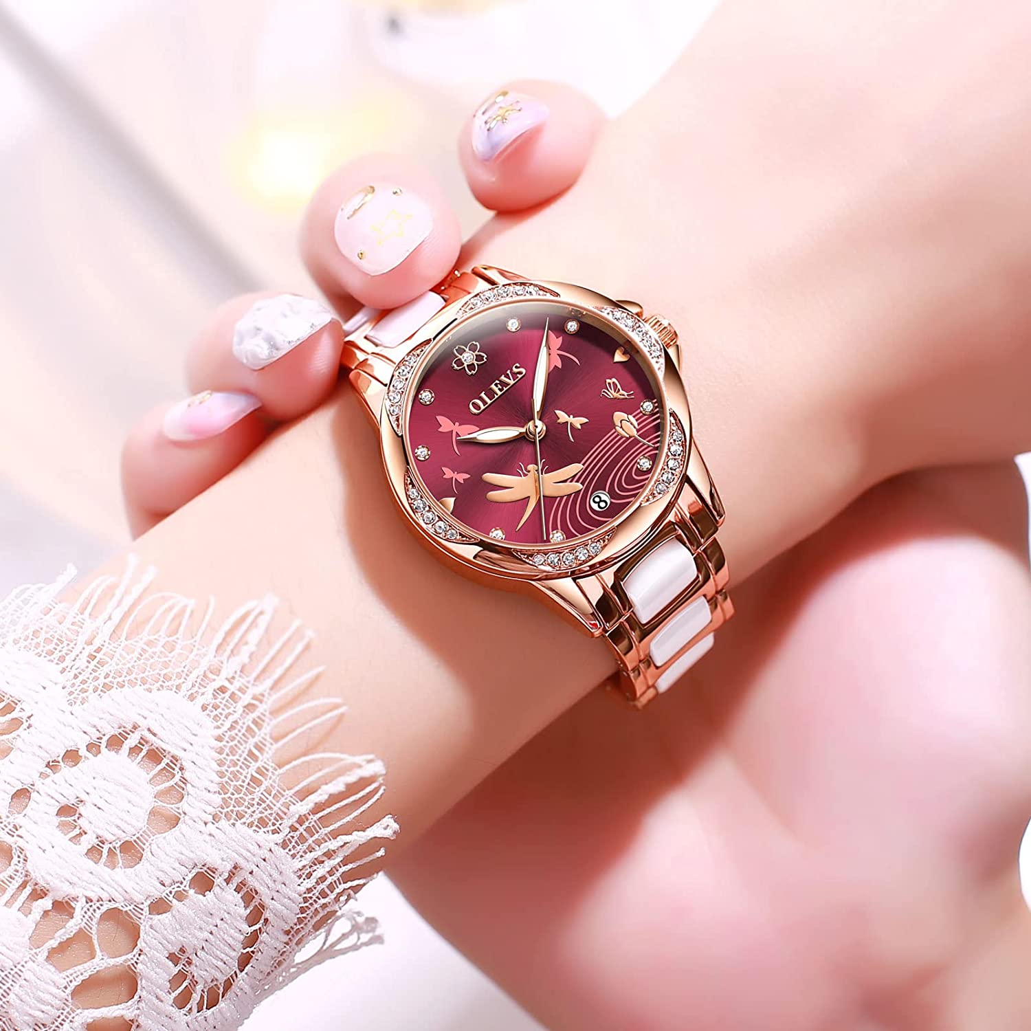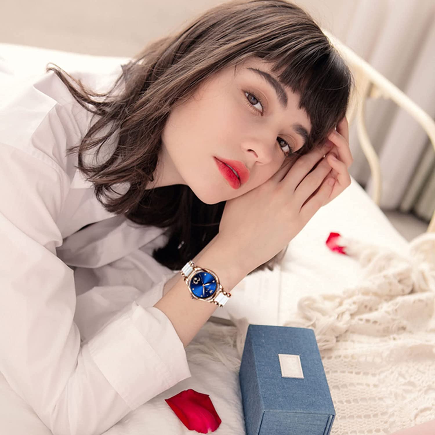 - 🎁Perfect Gift:This watch comes with nice gift box, it can be as perfect gift for your mom, girlfriend, little girl, wife, friend, business partner and other women. Also you can wear it in business meeting, parties, shopping and daily life.