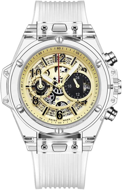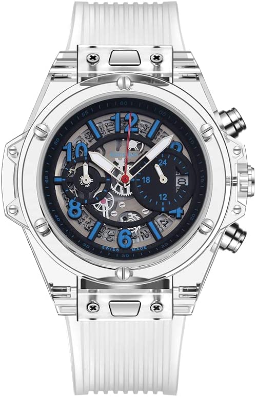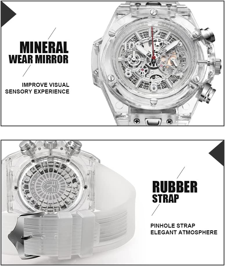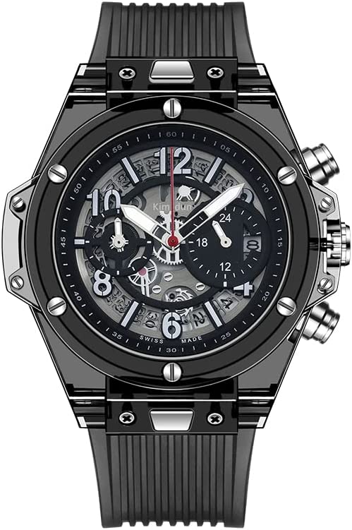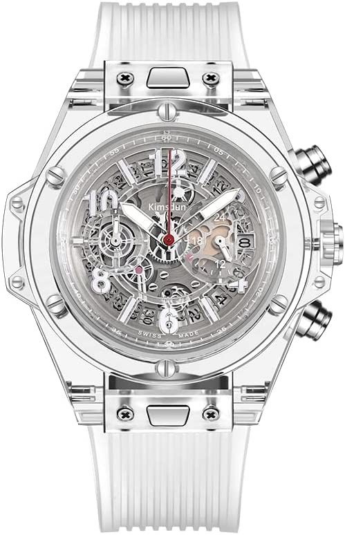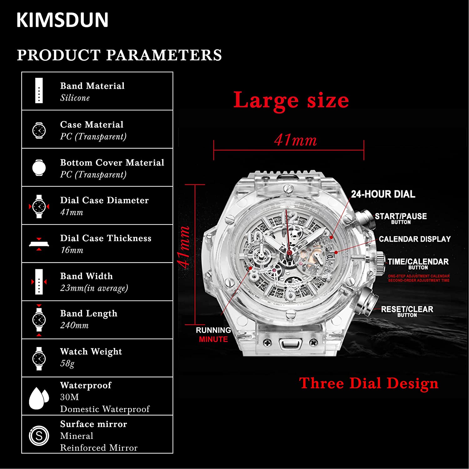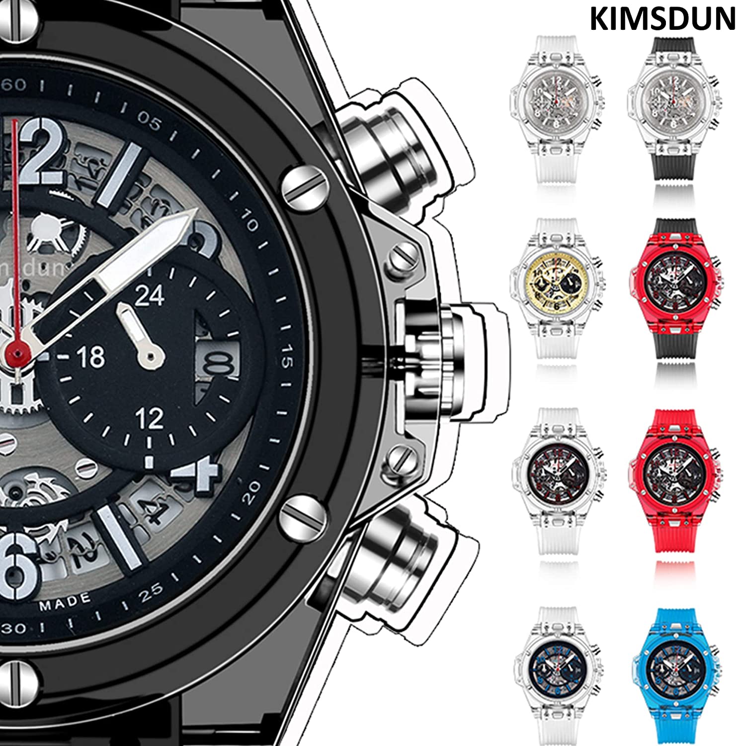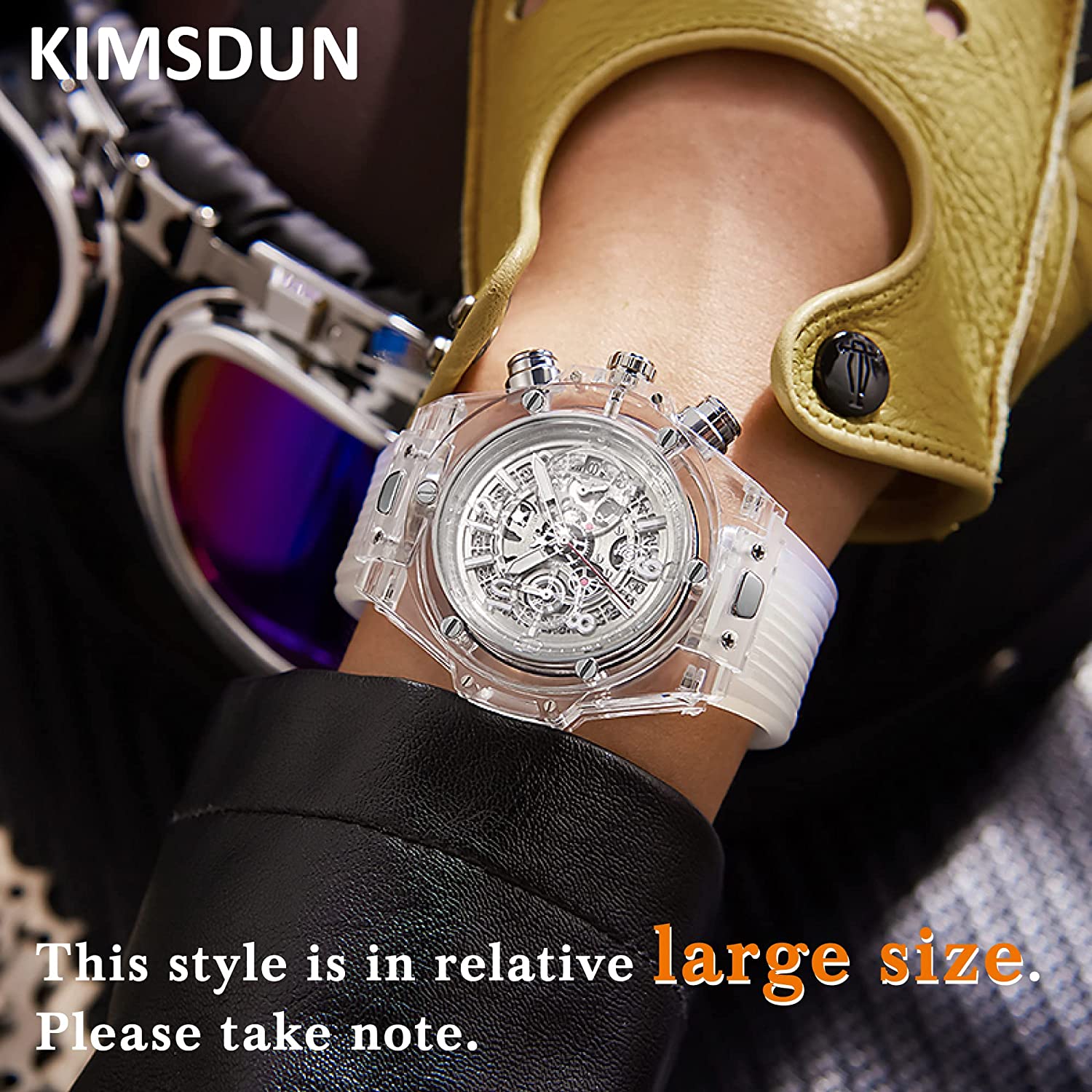 - KIMSDUN Sport watch, the perfect mix of sport , casual and fashion , matches jeans , T-shirt or suits very well. Stylish Skeleton Watch with Transparent Case to highlight your personality . It is a nice watch for stundents, men ,unisex and wide range ages of users. Many colors are available for your selection.