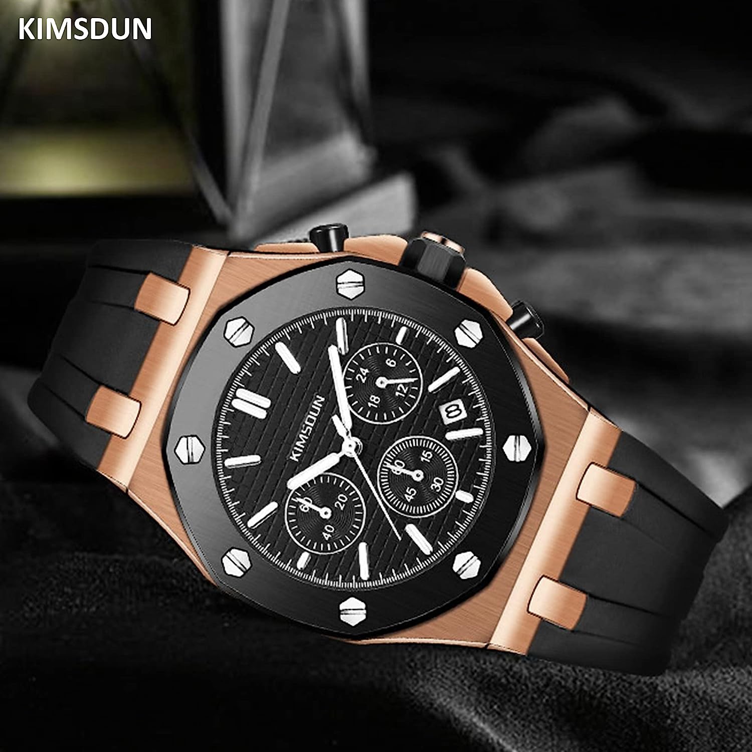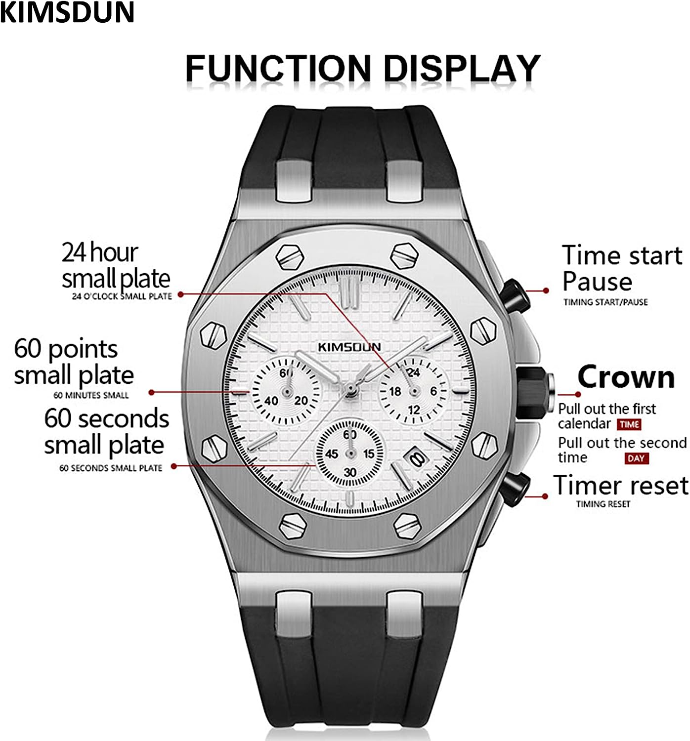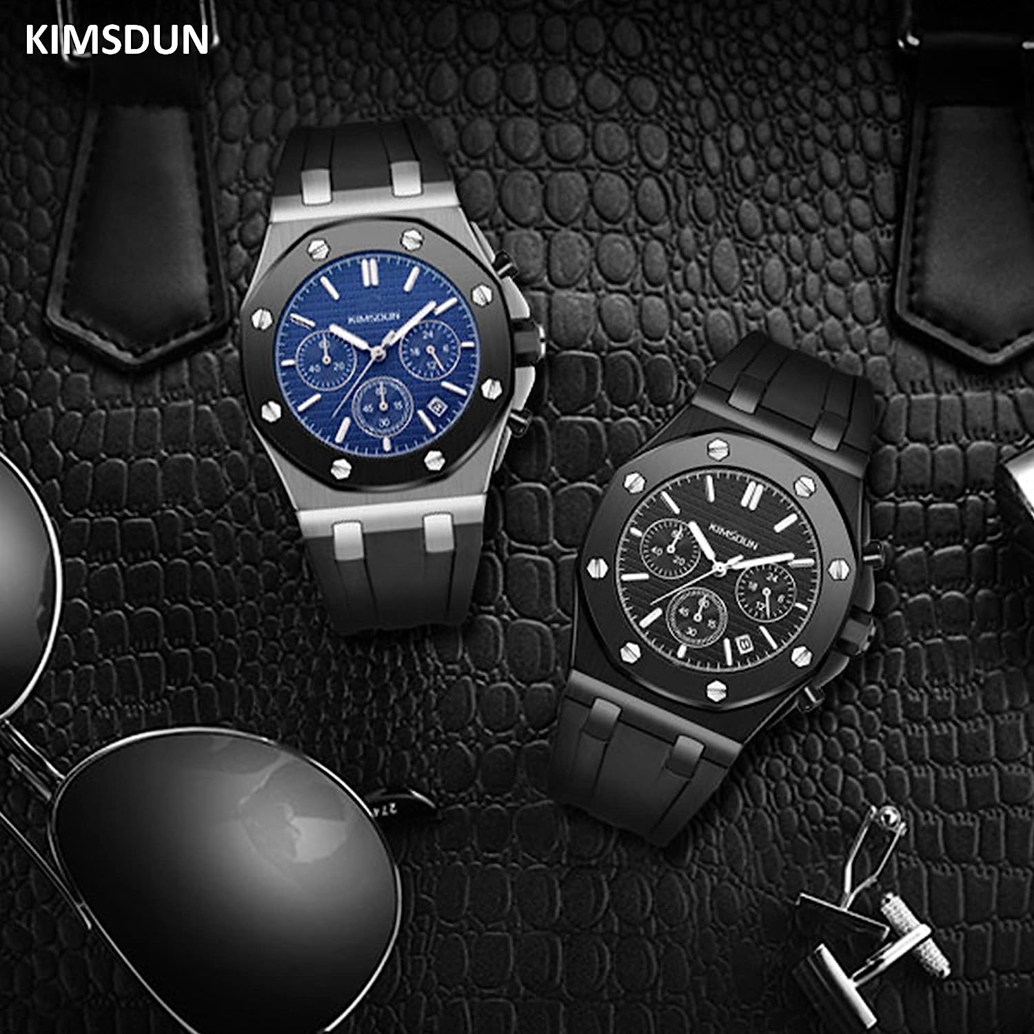 • KIMSDUN Stylish Sport Watches, 3 Dials, Stopwatch, 24 Hours, Waterproof, Date Calendar, Analog Quartz Wristwatch, Casual Watch, Silicone Strap for Men Students Unisex