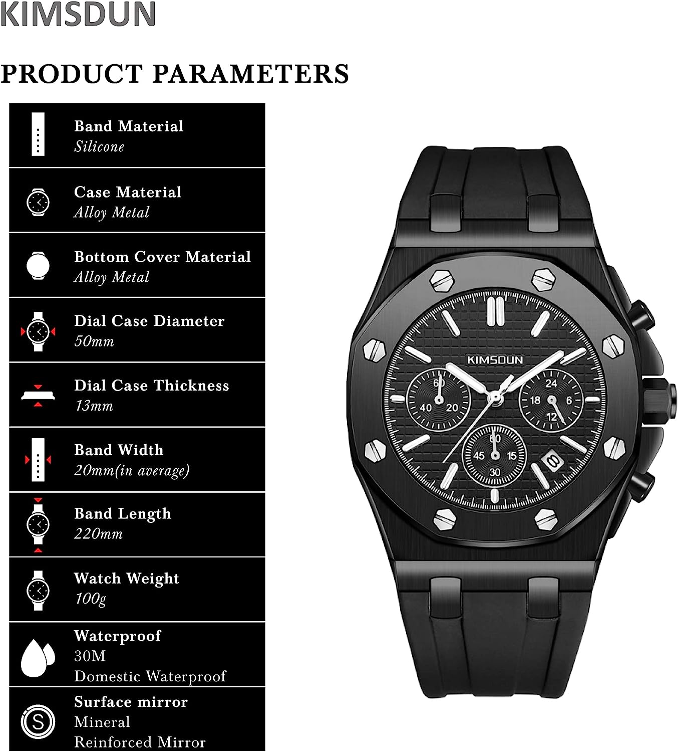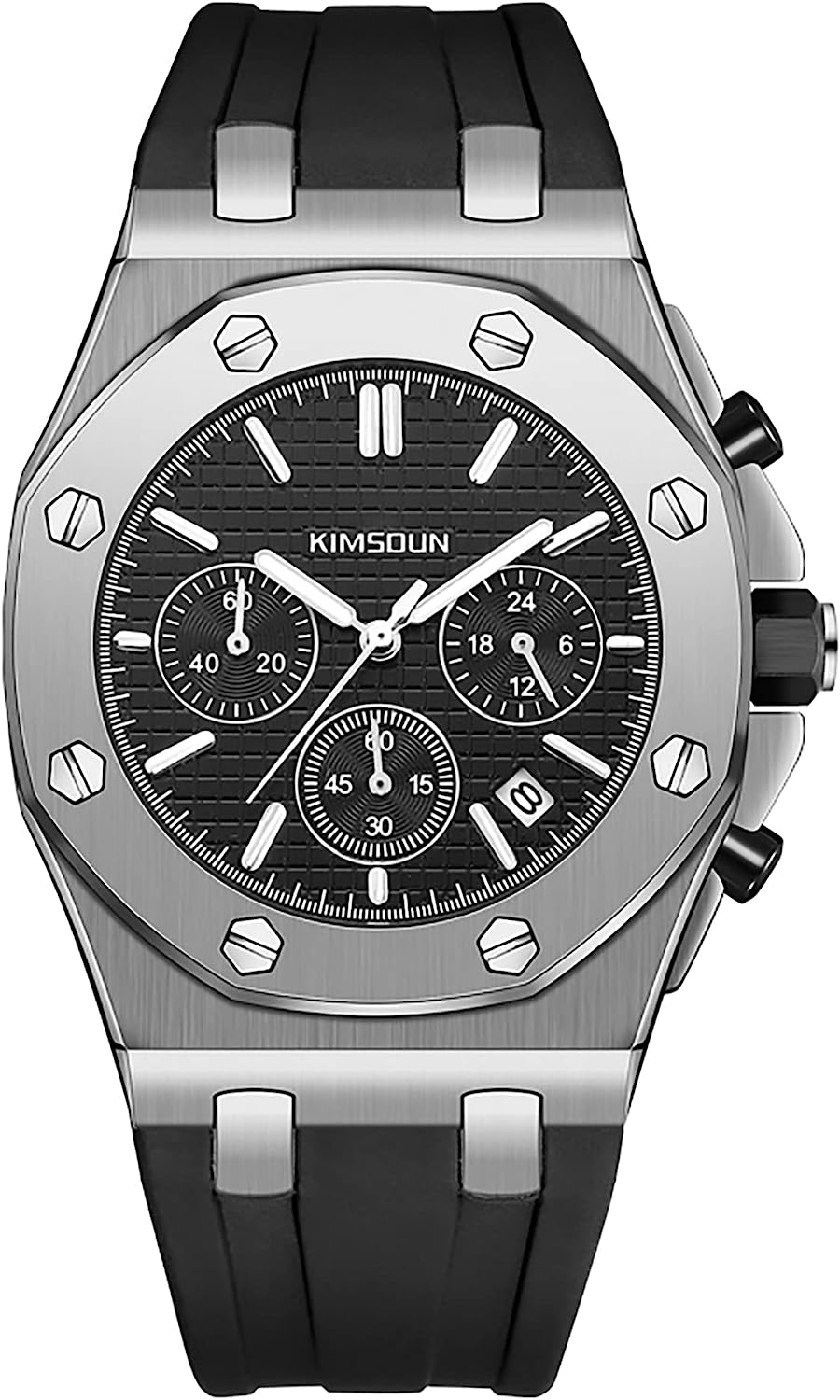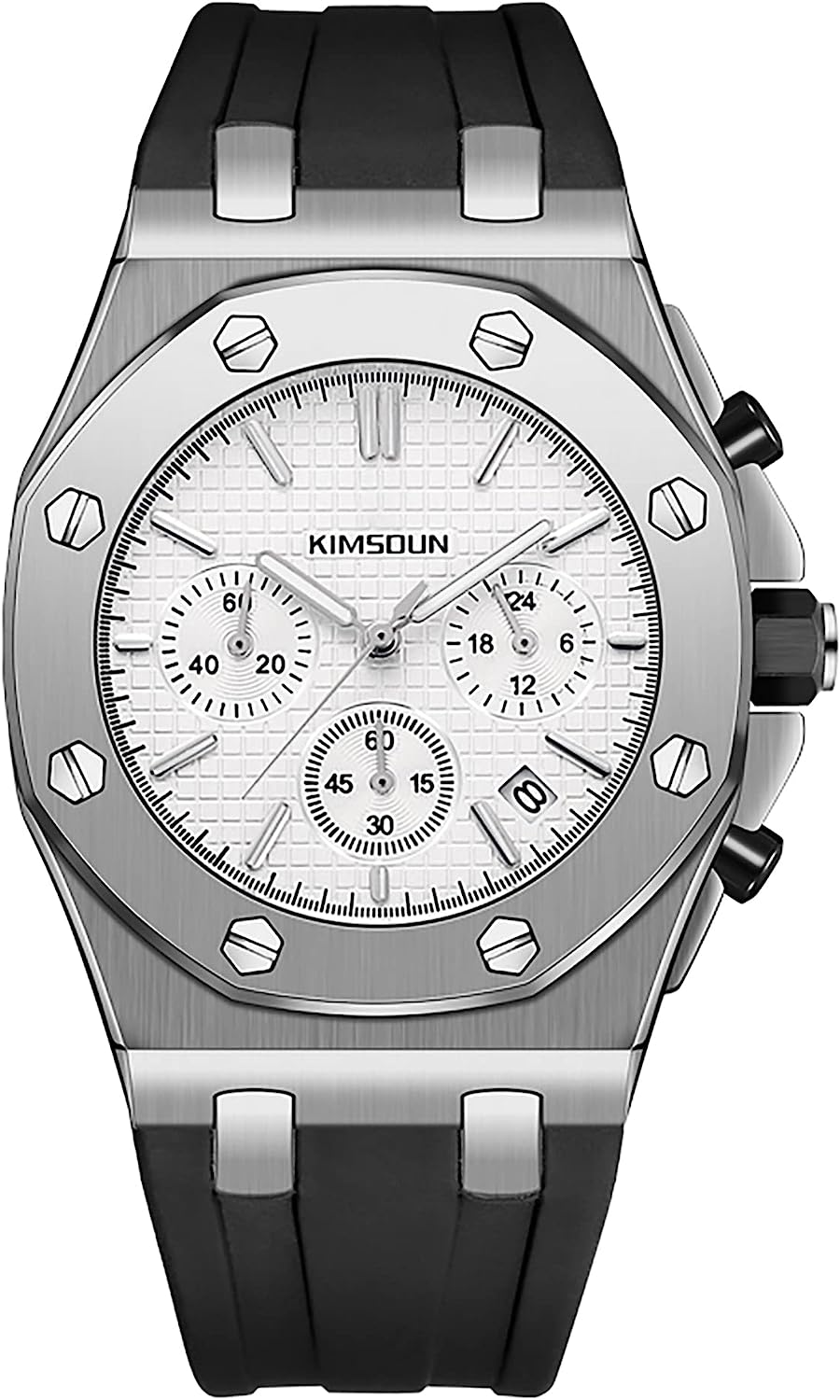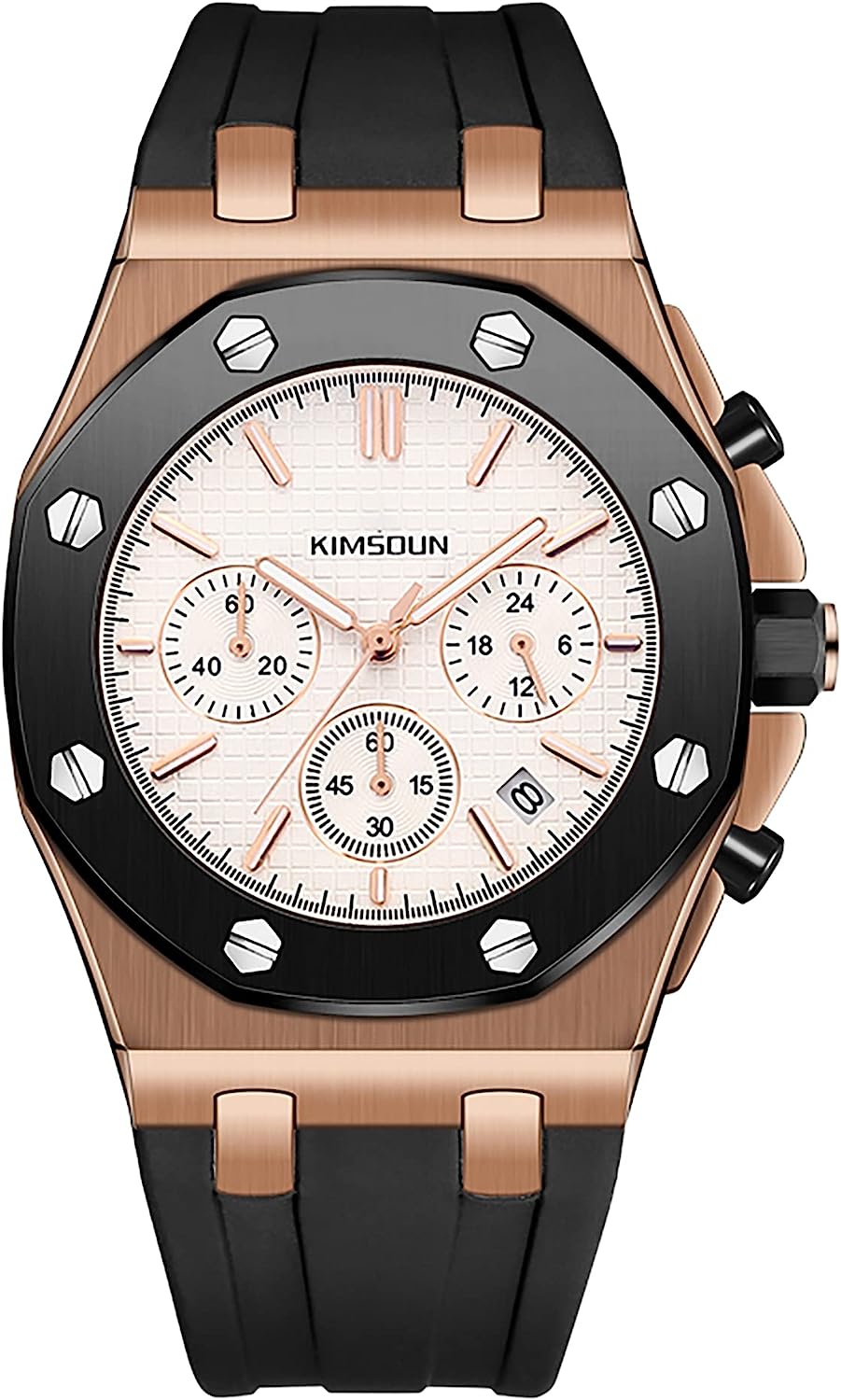 • KIMSDUN Stylish Sport Watches, 3 Dials, Stopwatch, 24 Hours, Waterproof, Date Calendar, Analog Quartz Wristwatch, Casual Watch, Silicone Strap for Men Students Unisex