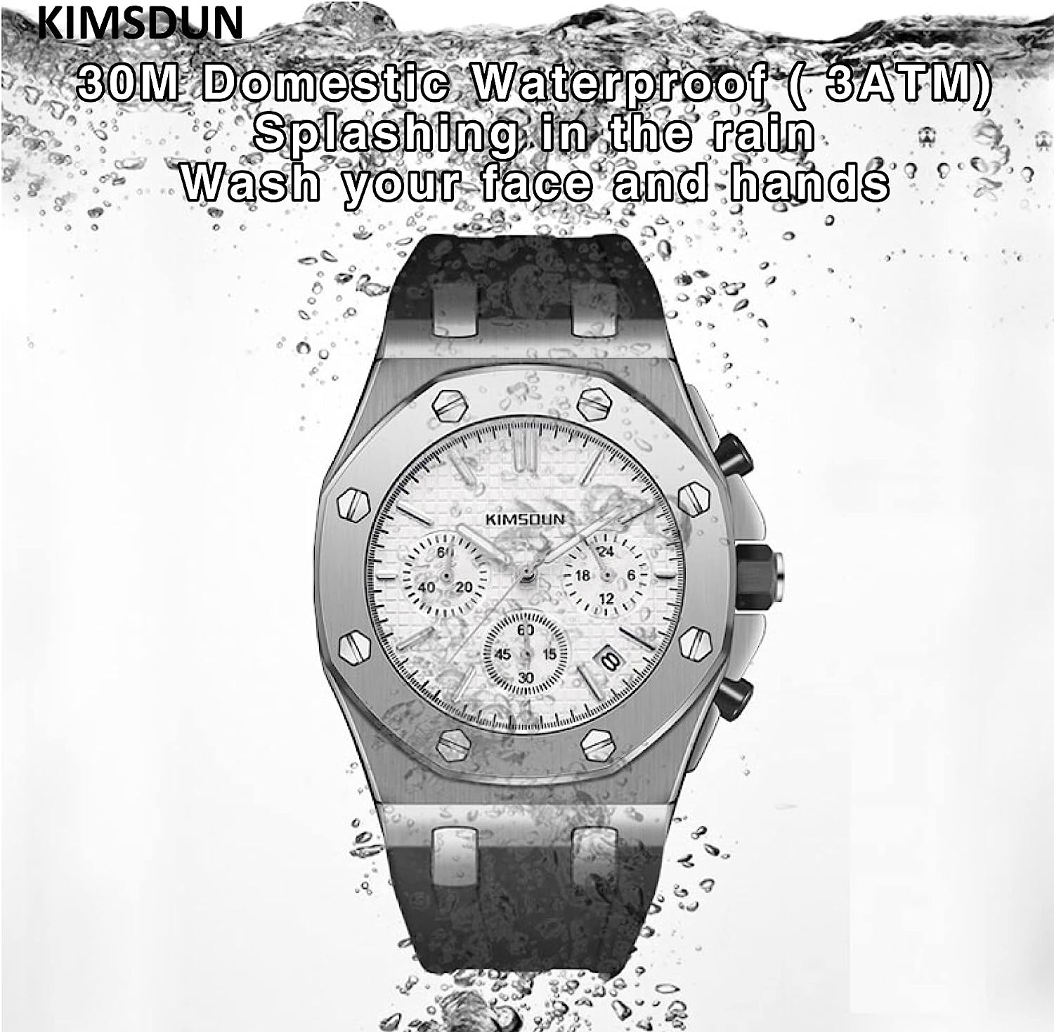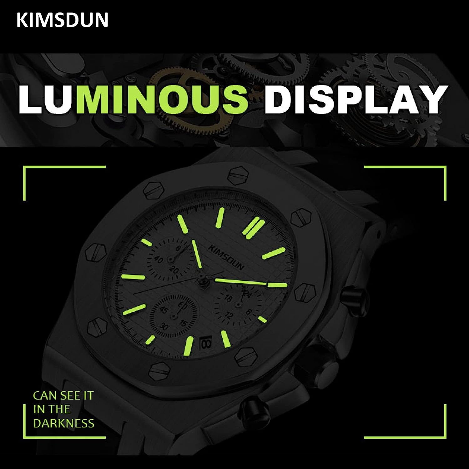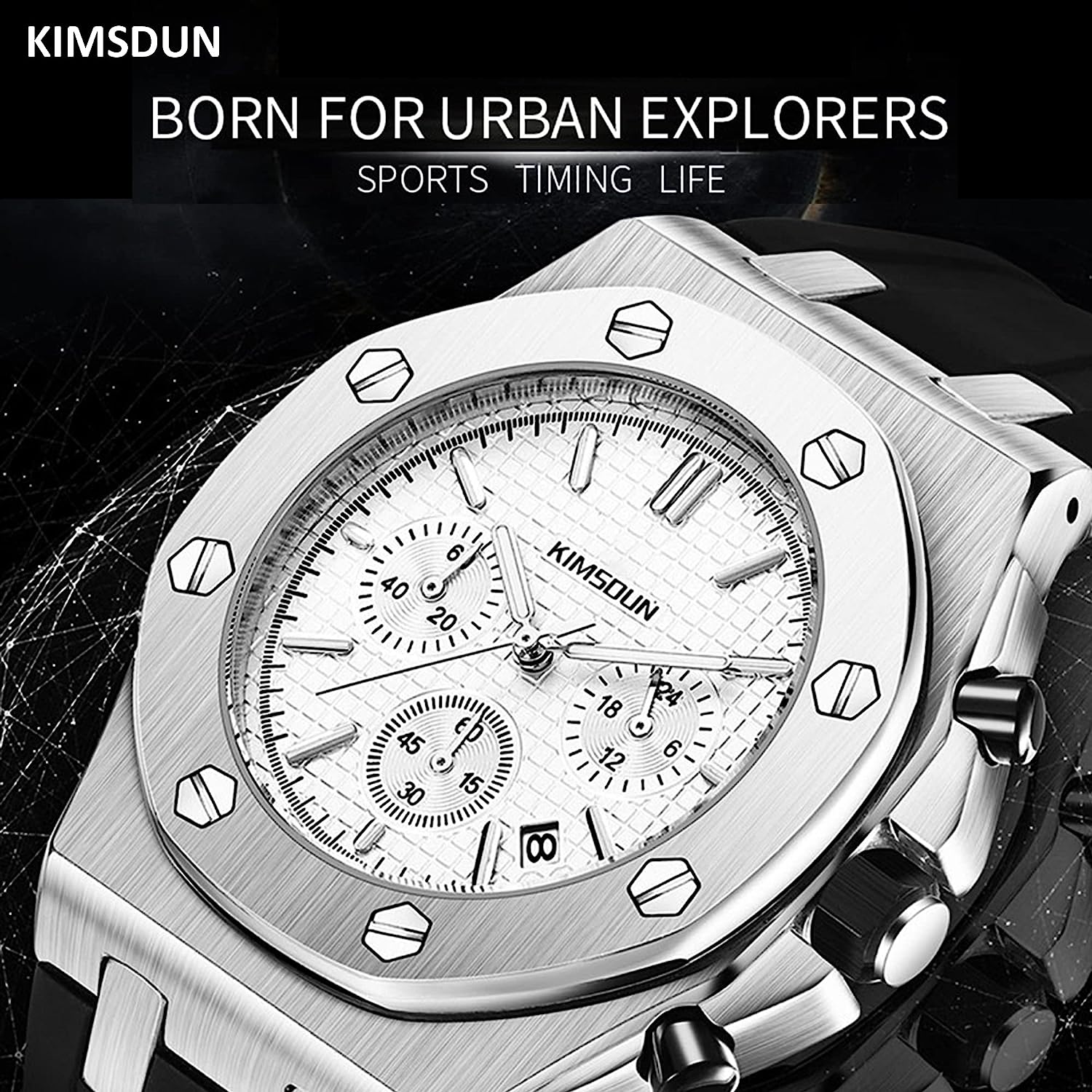 KIMSDUN Stylish Sport Watches, 3 Dials, Stopwatch, 24 Hours, Waterproof, Date Calendar, Analog Quartz Wristwatch, Casual Watch, Silicone Strap for Men Students Unisex