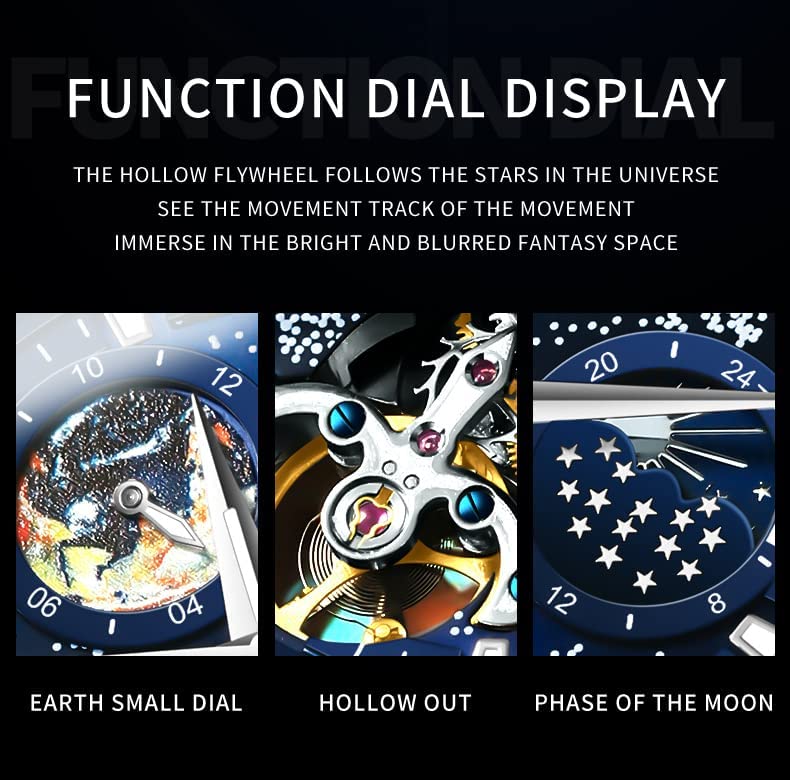 • ⌚Gypsophila Dial Design: the dial is the romance from the starry sky, condensing the blue night sky and stars and moon in it. A moon is so bright and colorful in the vast stars, and it rotates in an orderly manner, symbolizing the passage of time. The stars are dotted, and the moon is full of shortages, all presented on the wrist.