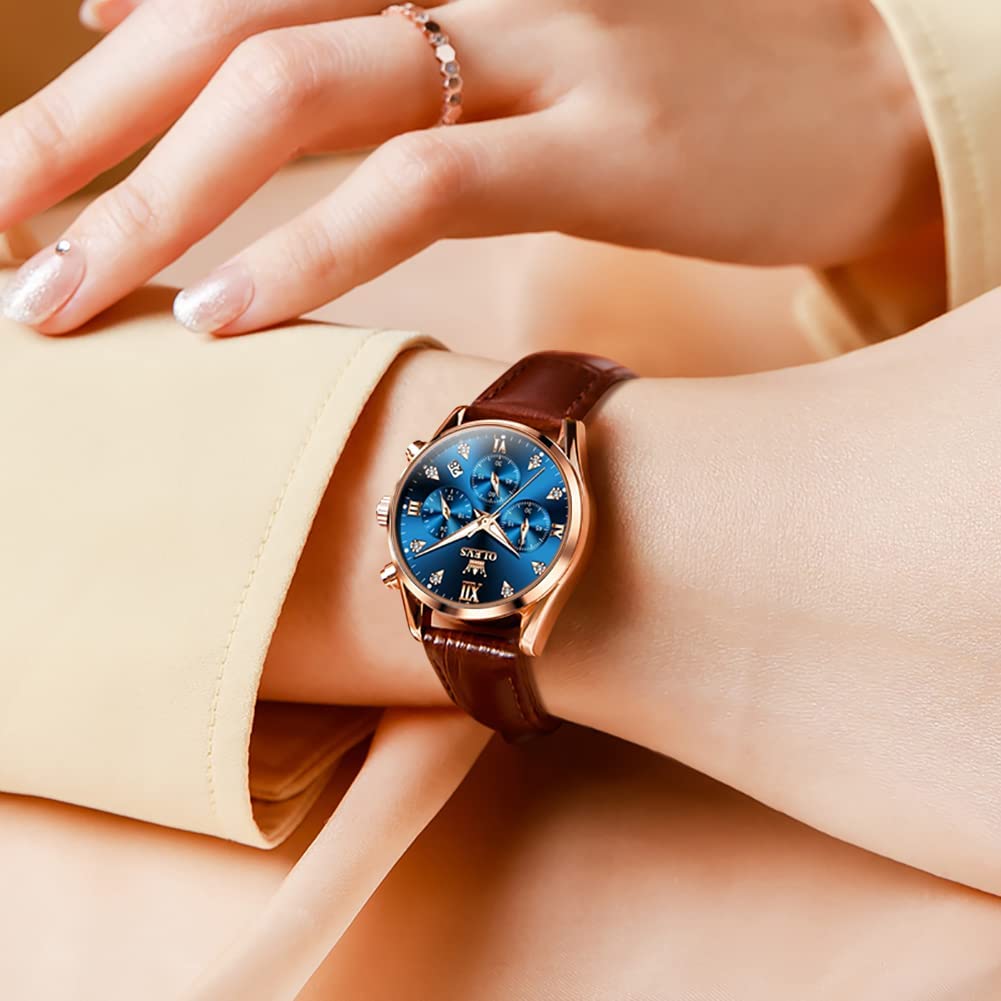 • 💗【Leather Ladies Watch】High-quality brown leather strap, soft and skin-friendly, comfortable and breathable, easy to wear, allowing you to have a perfect wearing experience, it is the first choice for gift giving.