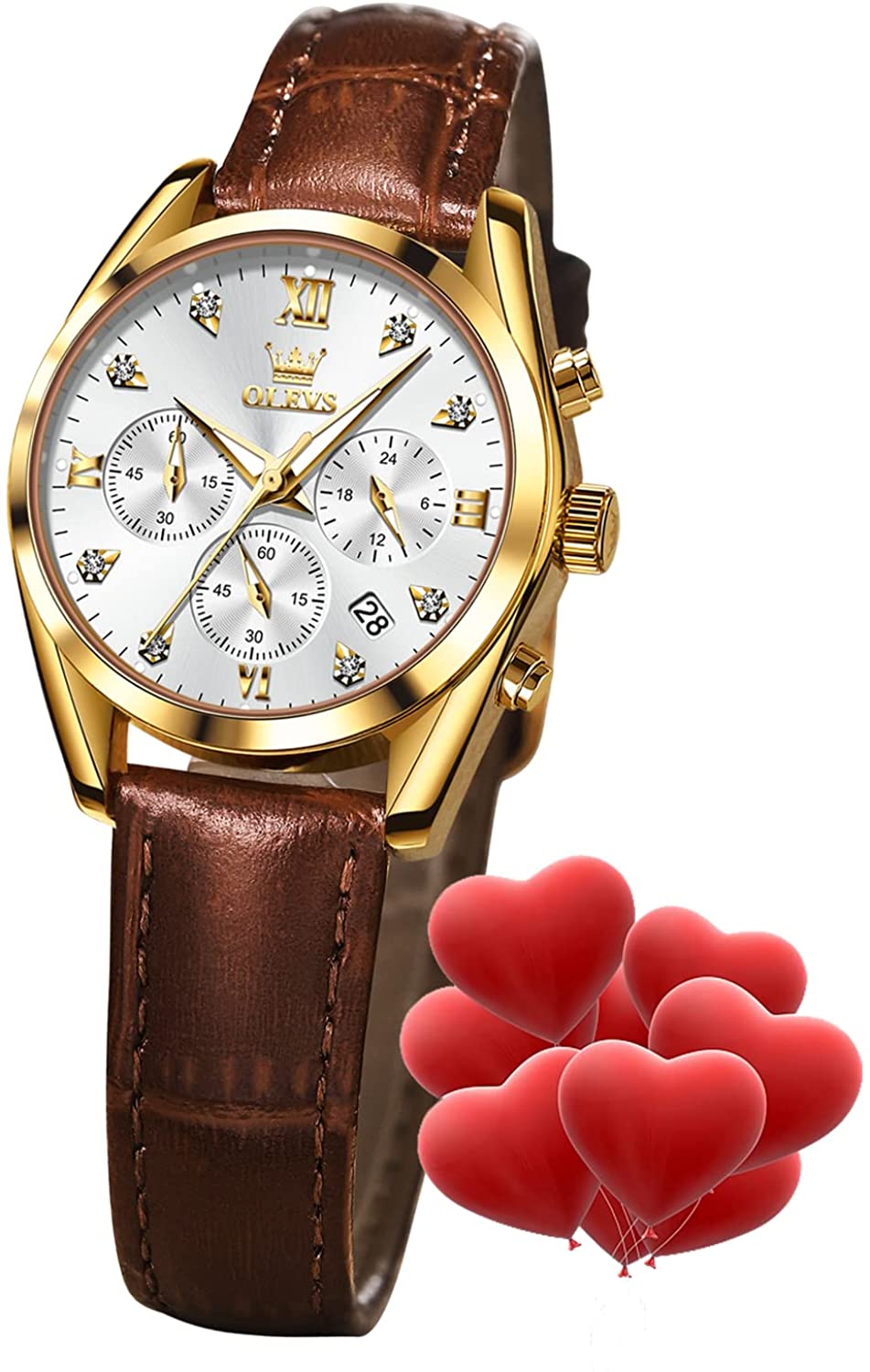 OLEVS Women's Watches Leather Strap Ladies Quartz Watch Chronograph Date Waterproof Luminous Gift Female Wristwatch All items in order#114213