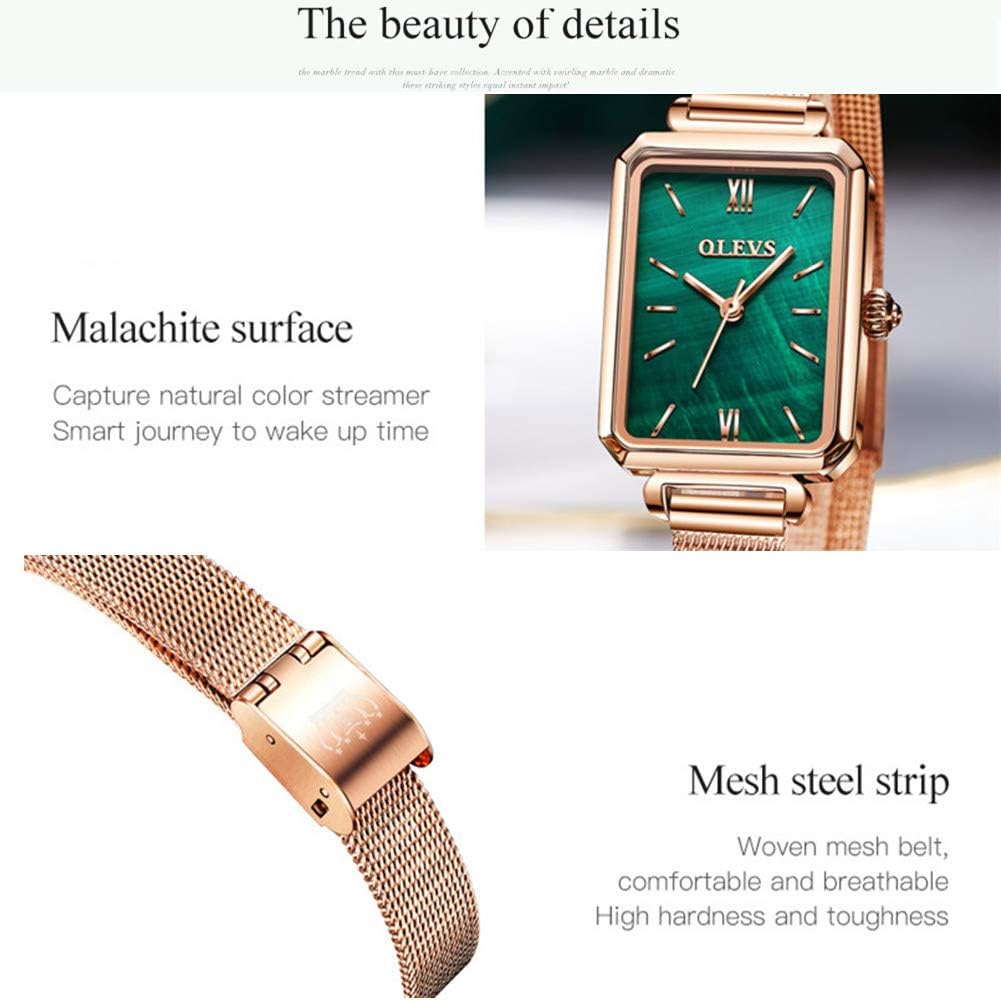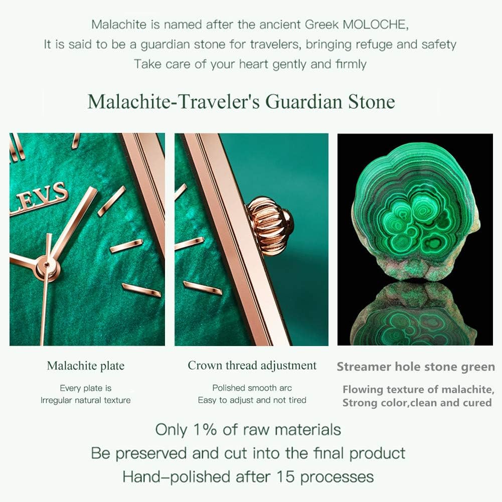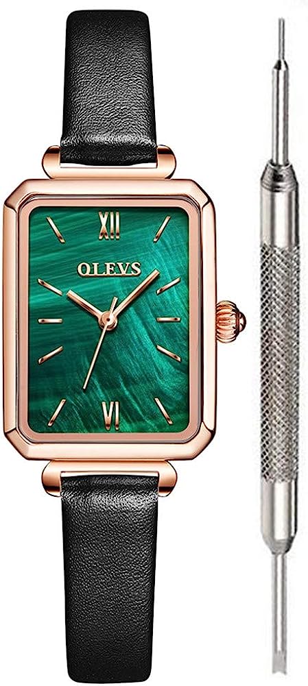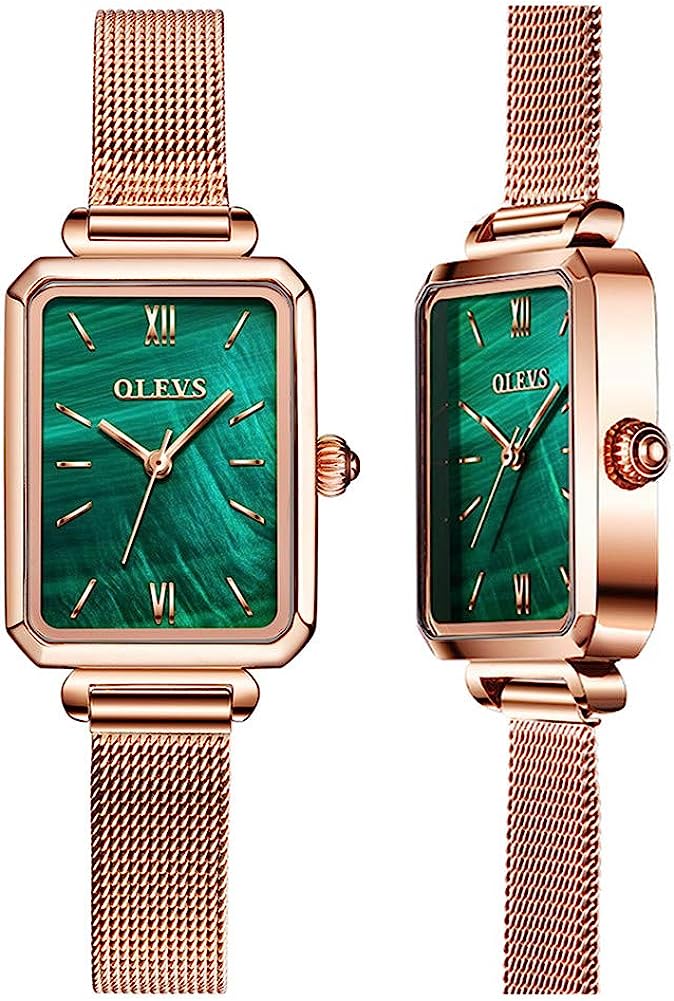 • 【Watch Type】 square watches for women/analog quartz watch,watch case:22 X 29mm diameter and 7.5mm thickness,precision japan quartz core;±20 seconds per month accuracy,scratch resistant.Suoer small green disc watch with black agate crown,personality highlights fashion temperament,meaning love and hope.At OLEVS,luxury is a value.It’s an attention to detail.It's a promise to never take shortcuts and a commitment to always providing our customers with the best.